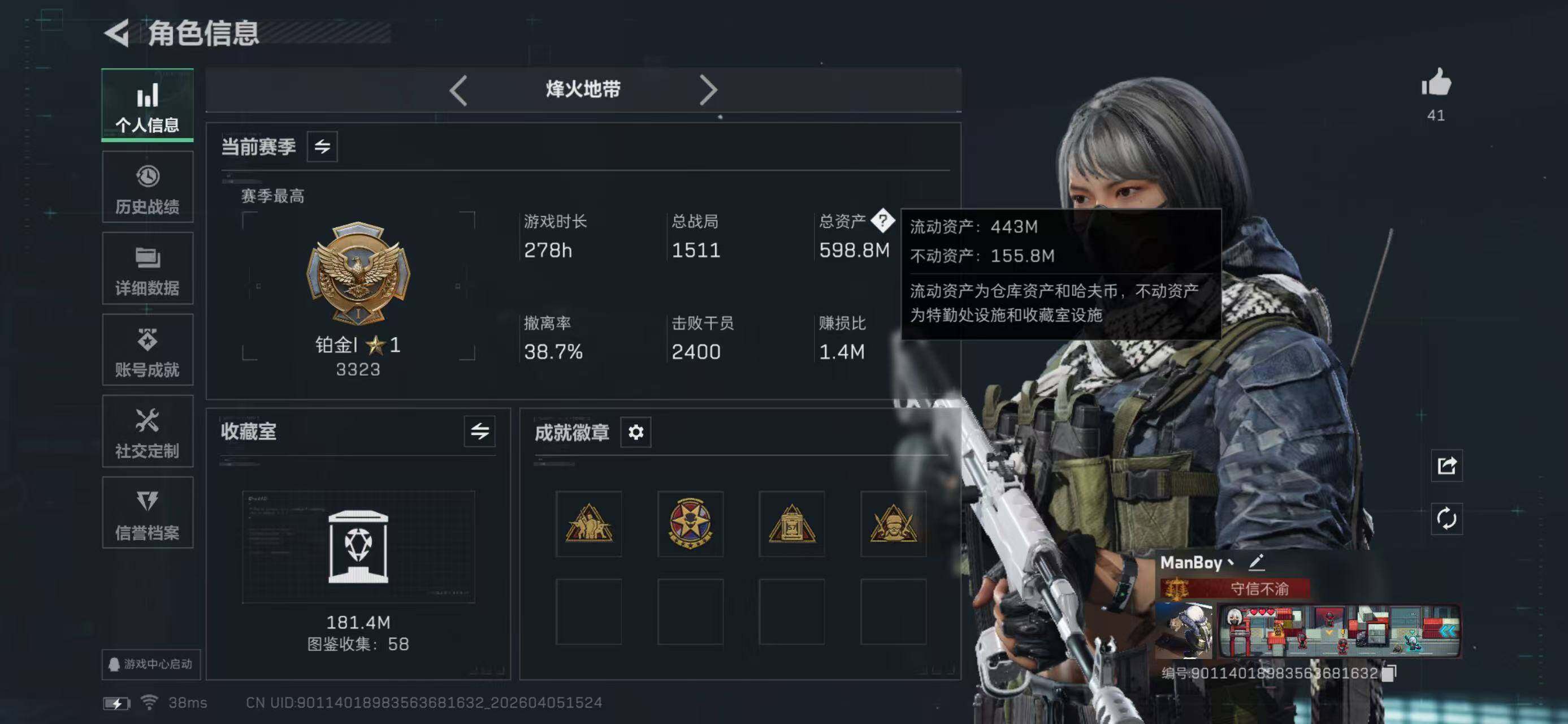 【3010】总资产(M):599M/哈夫币(K):195120K/哈夫币(K)