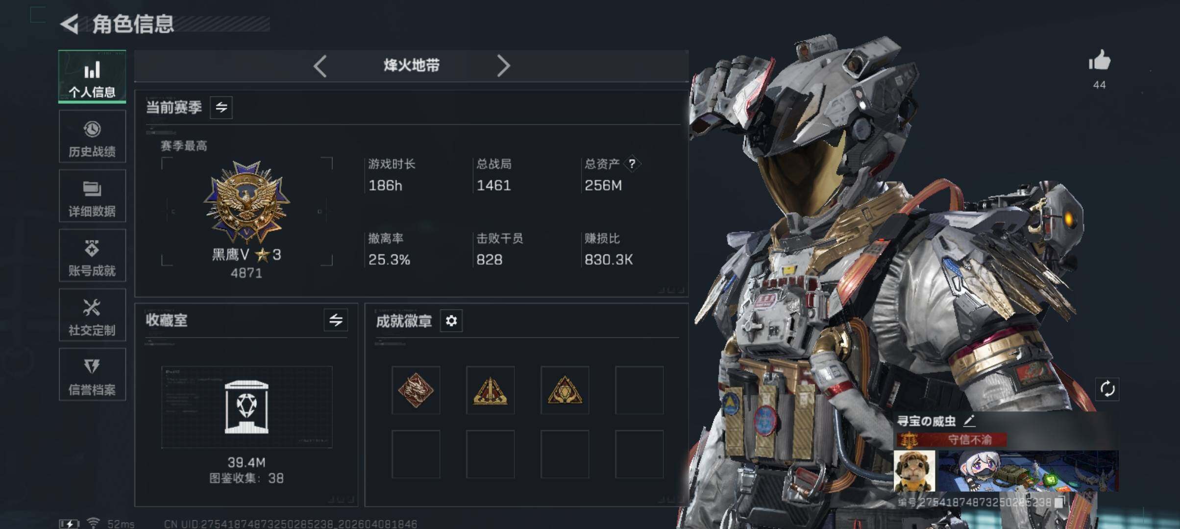 256m总资产-63276k哈夫币-60烽火等级-黑鹰-13战场等级-上等兵