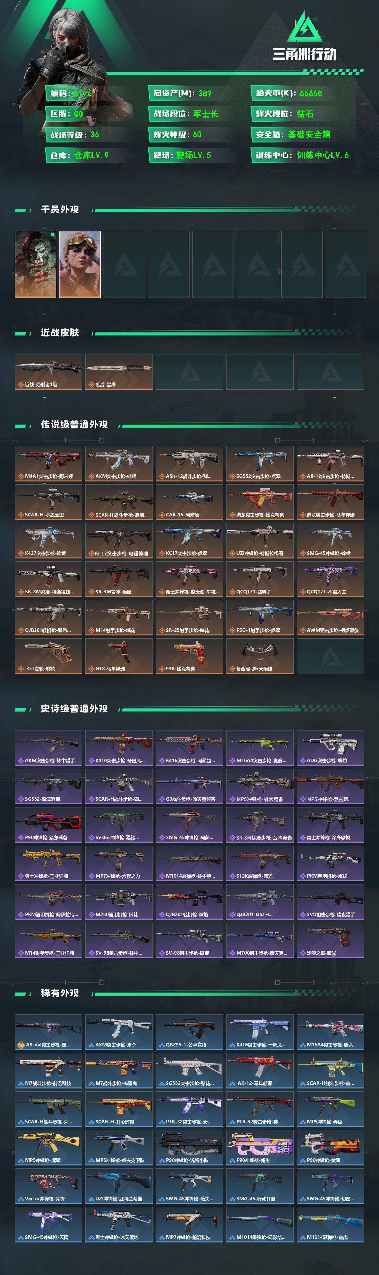 389m总资产-55658k哈夫币-60烽火等级-钻石-36战场等级-军士长