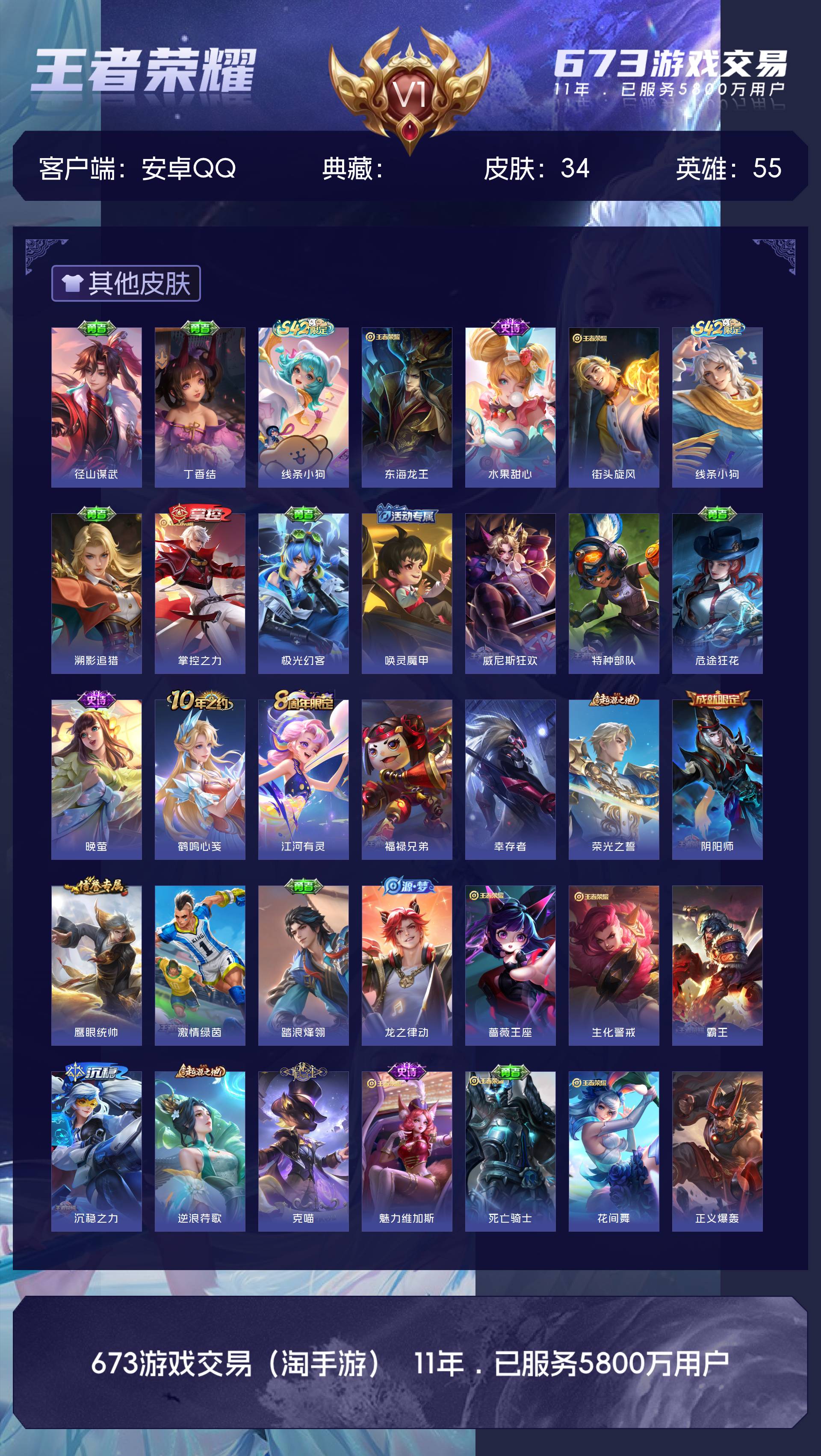 V1 皮肤34 英雄55 永恒钻石