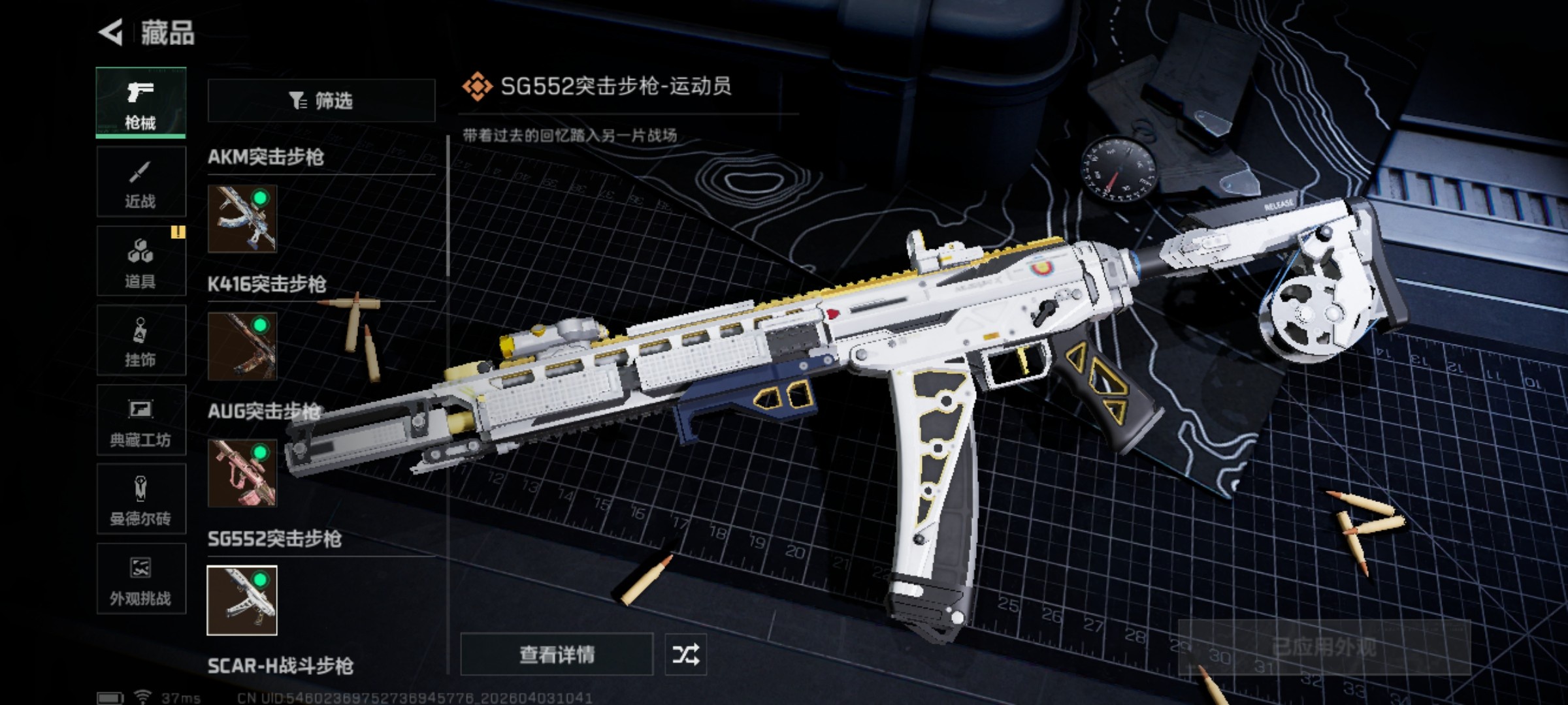 QQ区 哈夫币:31595330 干员外观数:5 近战数:3 典藏数:2 枪械数:153 载具数:13 烽火地带等级:60 全面战场等级:15 烽火地带段位:白银 全面战场段位:列兵 特勤处:技术中心Lv.3|工作台Lv.3|制药台Lv.3|防具台Lv.3 捆绑包:信条捆绑包|悠然茶歇捆绑包|缄花捆绑包|锦绣捆绑包|捞点薯条捆绑包 干员外观:骇爪-维什戴尔|蛊-不羁人生|露娜-金牌射手|乌鲁鲁-荒原猎手|红狼-电锯惊魂 近战:处刑者|信条|黑鹰 枪械:SMG-45冲锋枪-锦绣|K416突击步枪-