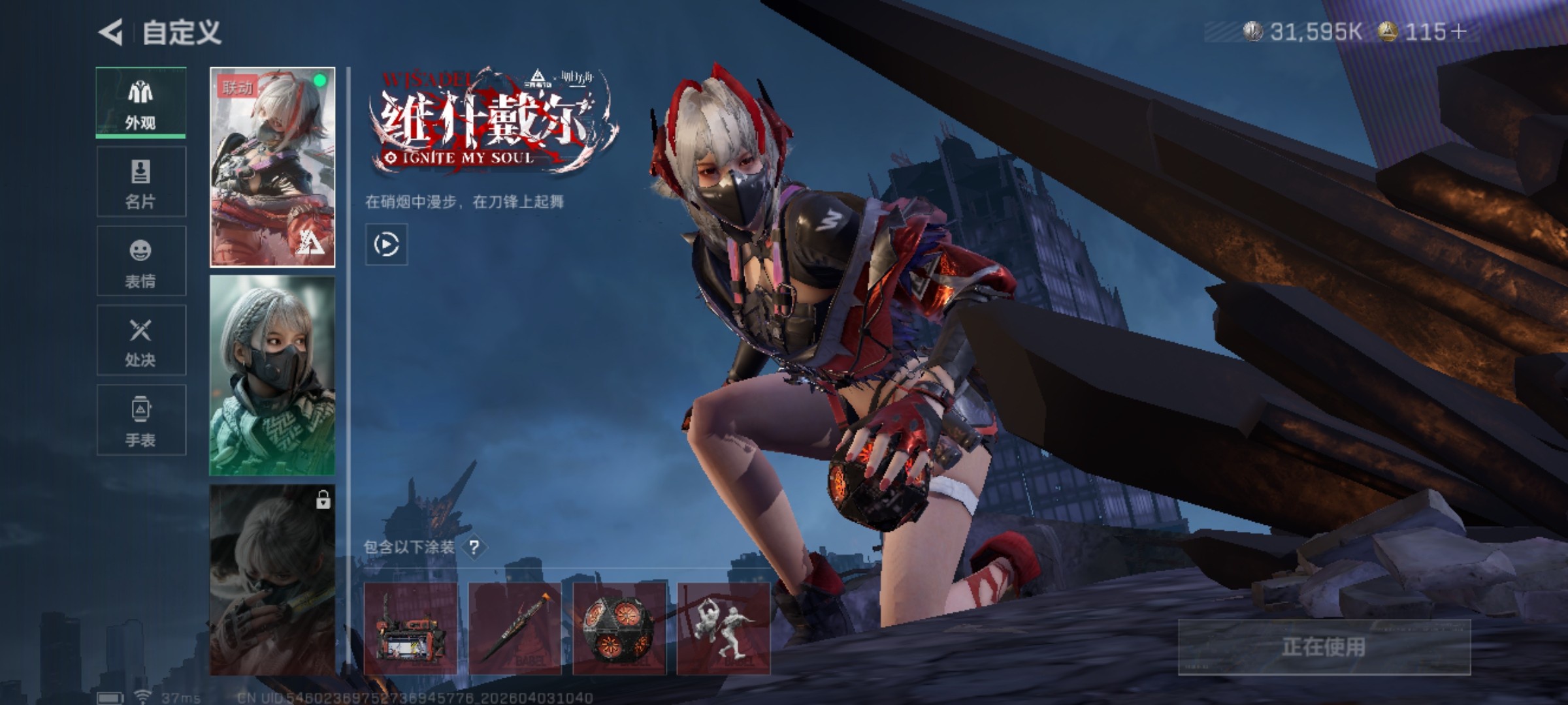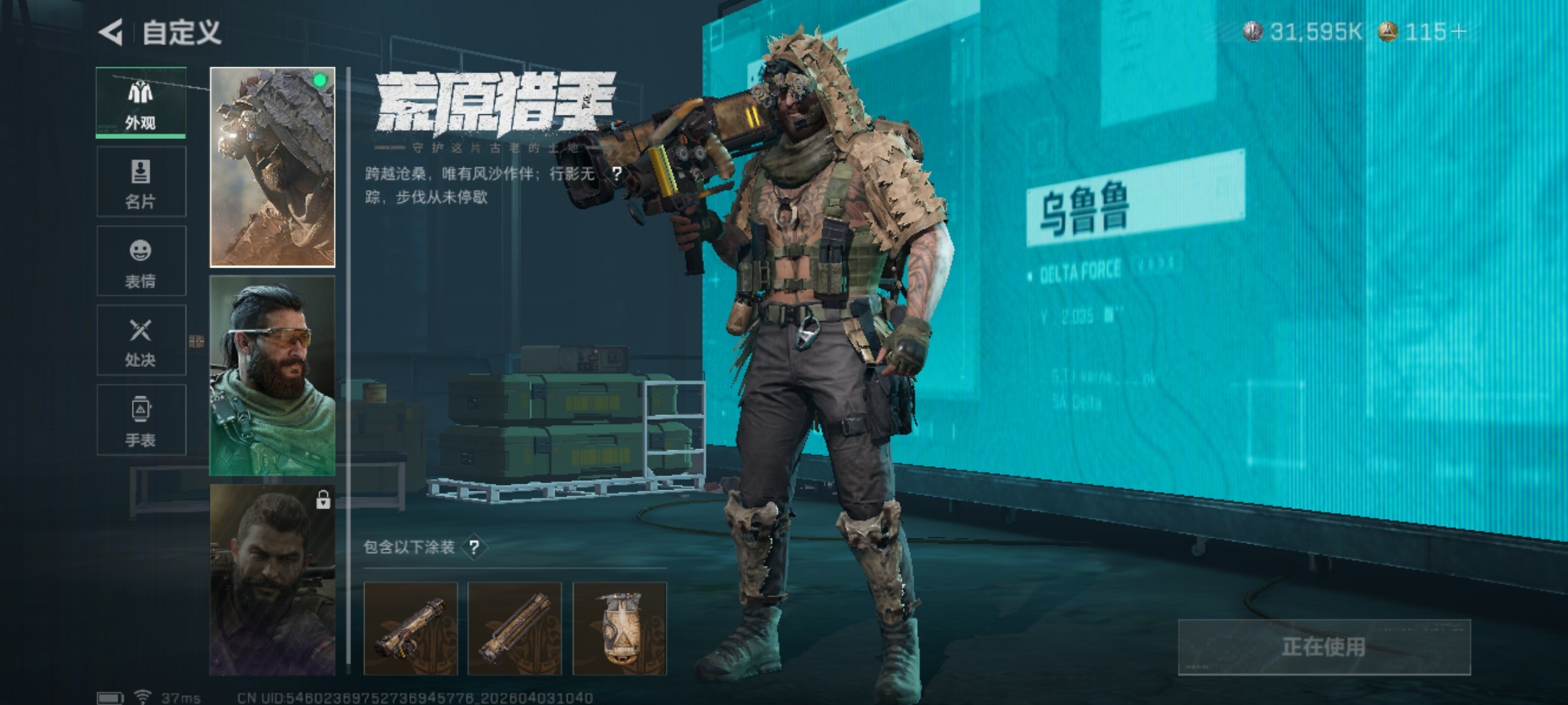 哈夫币:31595330 干员外观数:5 近战数:3 典藏数:2 枪械数:153 载具数:13 烽火地带等级:60 全面战场等级:15 烽火地带段位:白银 全面战场段位:列兵
