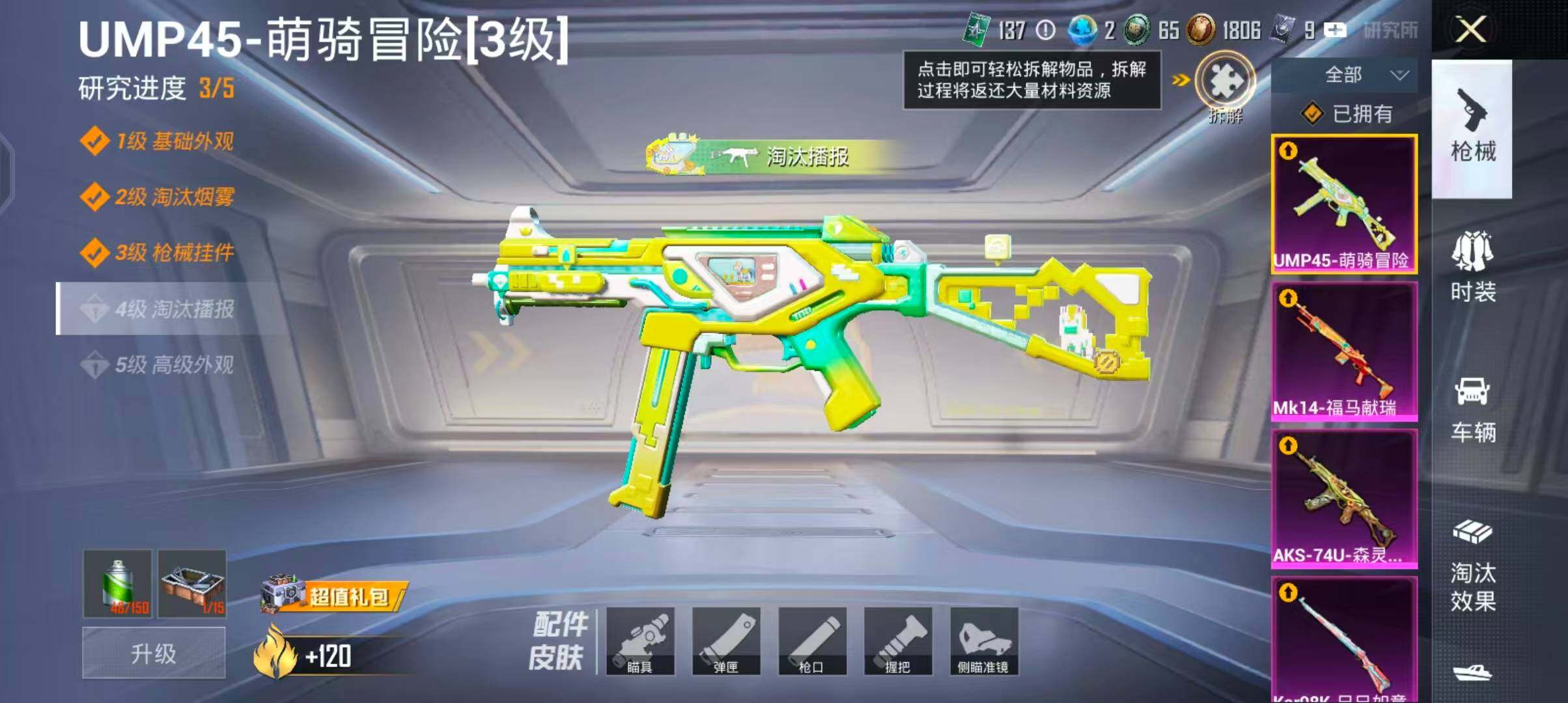【FK6801】粉枪4/套装33/枪皮48/热力值11275/历史最高段位:王牌印记1次/Lv:39/三级UMP45-萌骑冒险/四级AKS-74U-森灵之息/三级Kar98K-巳巳如意/五级Mk14-福马献瑞/UMP45-萌骑冒险/AKS-74U-森灵之息/Kar98K-巳巳如意/Mk14-福马献瑞/套装-小鸟芋圆/套装-马上有钱/套装-迅捷龙虾/套装-紫幽梦/套装-蓝冰羽/套装-雨过天青/套装