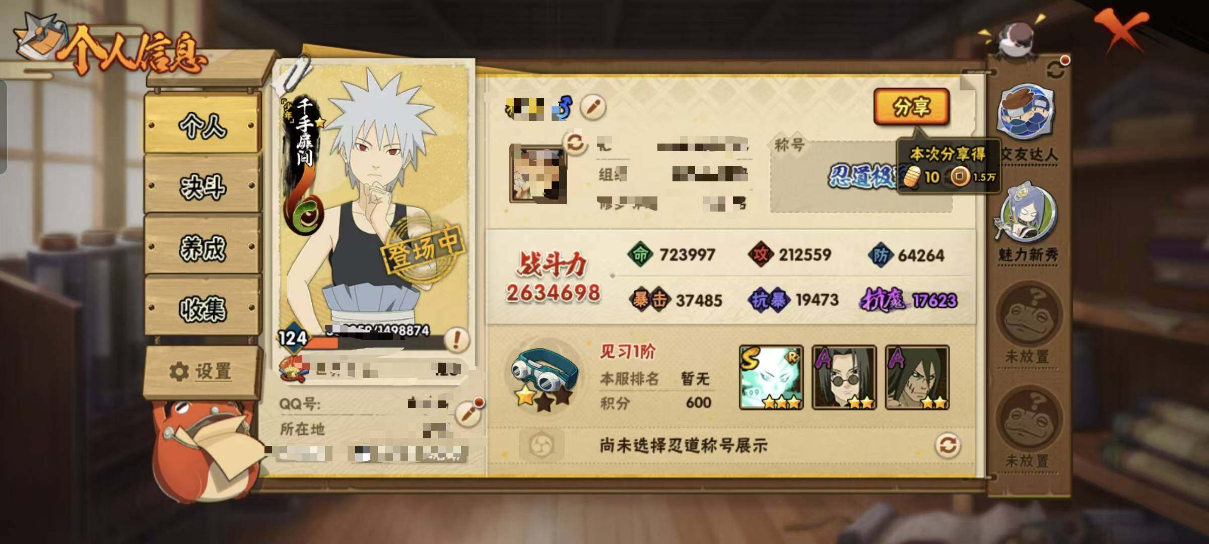 【HYSA1197】V8/战力263W/S忍7/A忍14/3星自来也「舞之豪杰