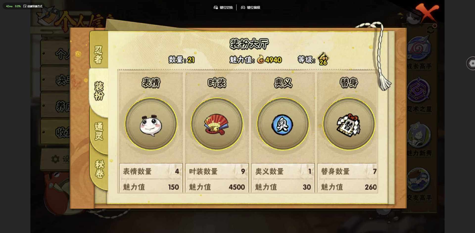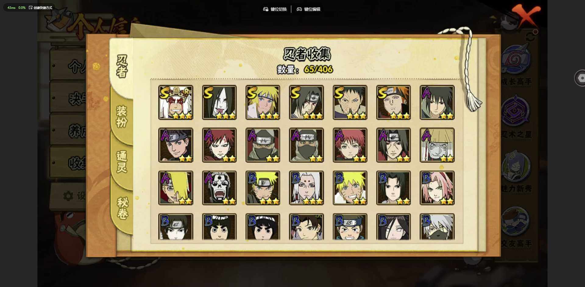 实名: 可修改 贵族等级: V1 S忍数: 6 A忍数: 10 战力值(万): 216 S级忍者: 佩恩「天道」,大蛇丸,波风水门,宇智波鼬 「须佐能乎」,宇智波带土 「忍界大战」,自来也 「舞之豪杰」