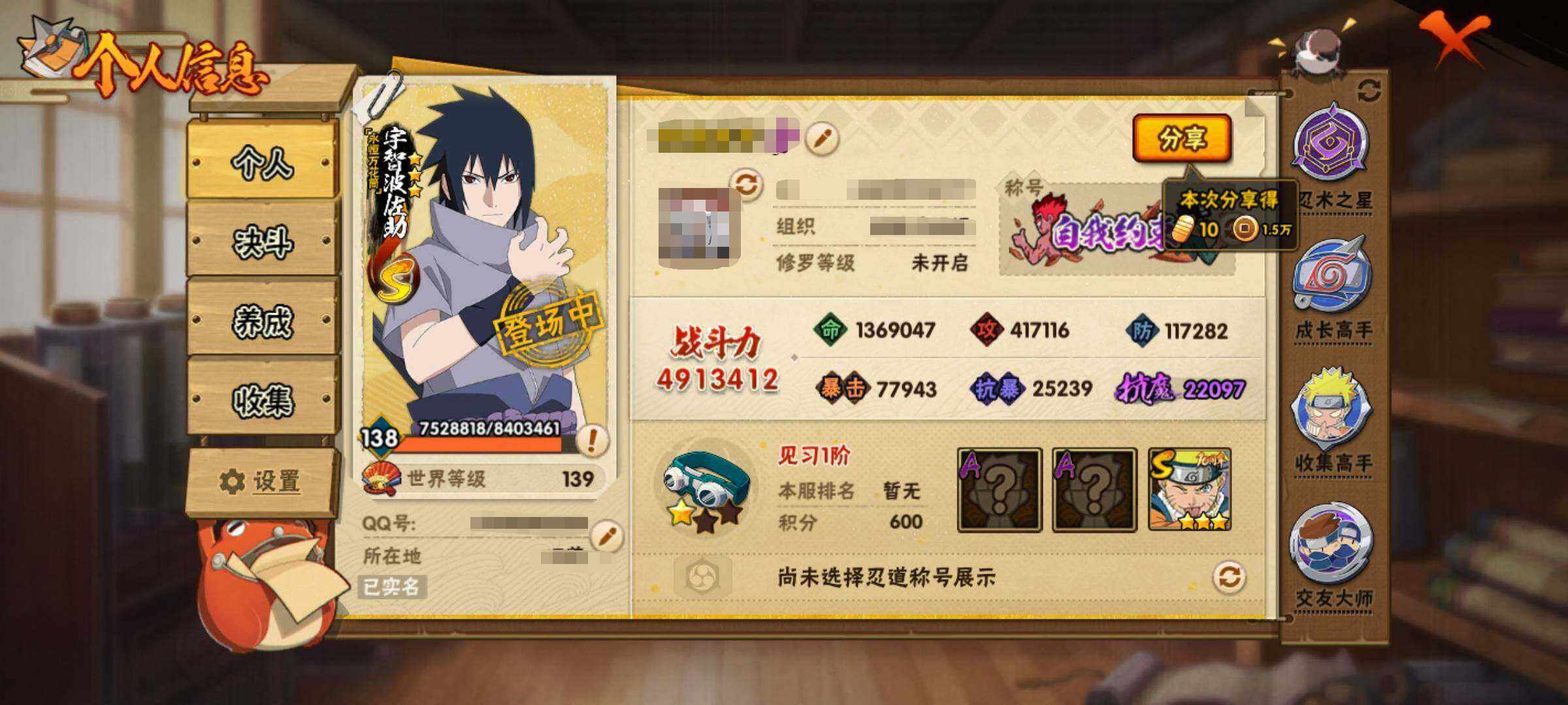【HYX3714】V7/战力490W/S忍9/A忍27/2星日向宁次「忍界大战」/2星大野木「侠隐江湖」/2星飞段「死司凭血」/2星宇智波鼬/3星宇智波佐助「永恒万花筒」/2星长门「青年」/2星小南「神驹佑将」/2星蝎/3星佩恩「天道」/3星漩涡鸣人·宇智波佐助/2星角都「地怨虞」/3星波风水门/2星漩涡博人「桃式显现」/3星干柿鬼鲛/2星波风水门「青年」/3星自来也「舞之豪杰」/3星迈特凯「死