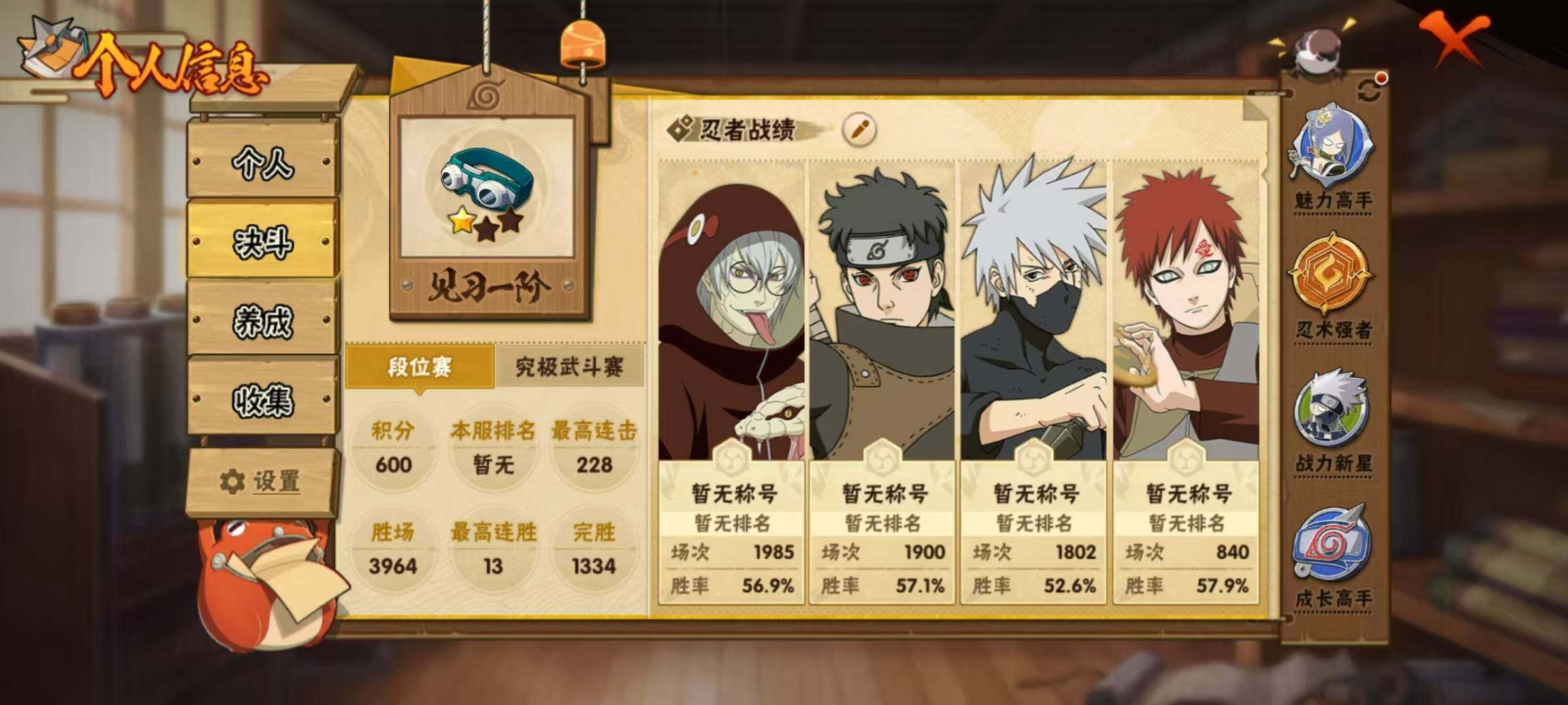 【A级忍者】:艾「青年」(2星),波风水门「青年」(2星),迪达拉「秽土转生」(2星