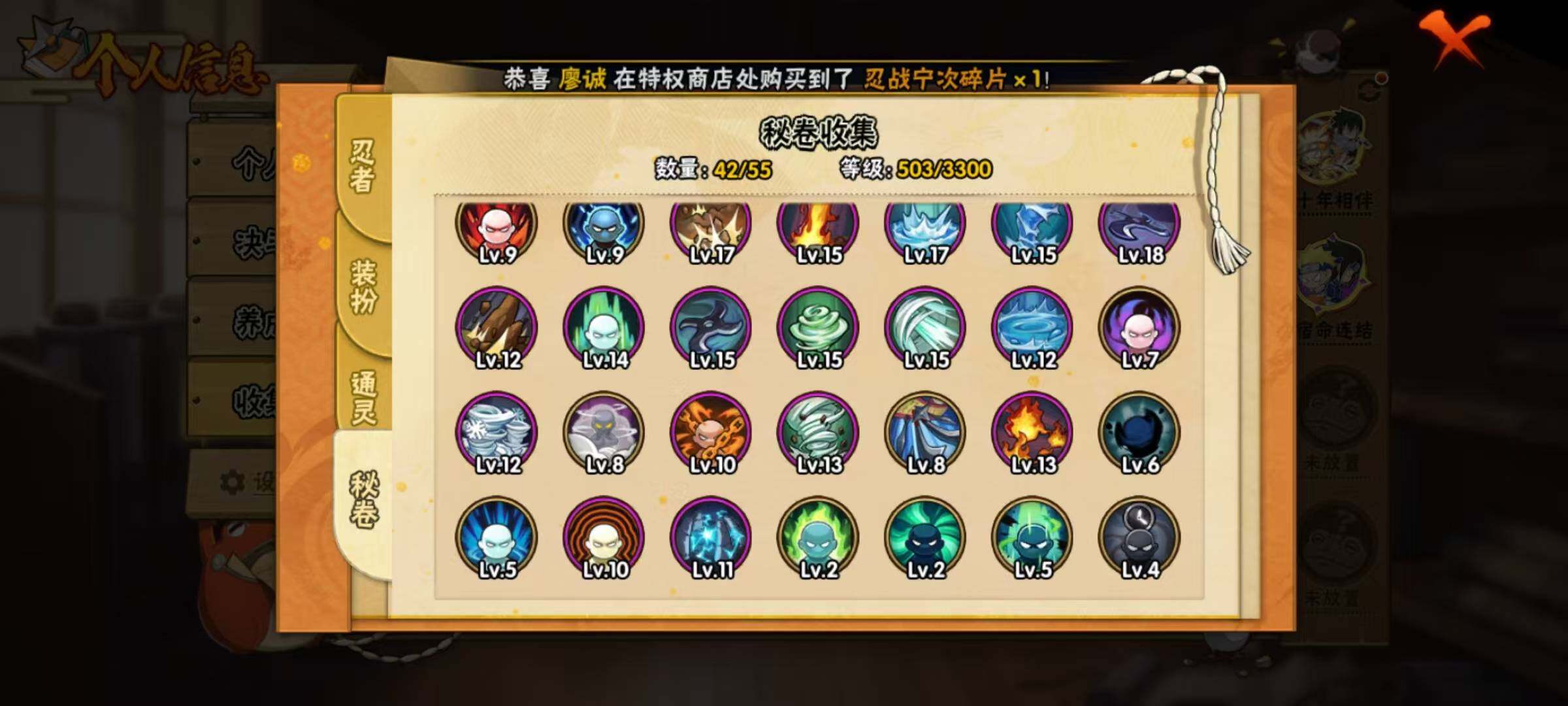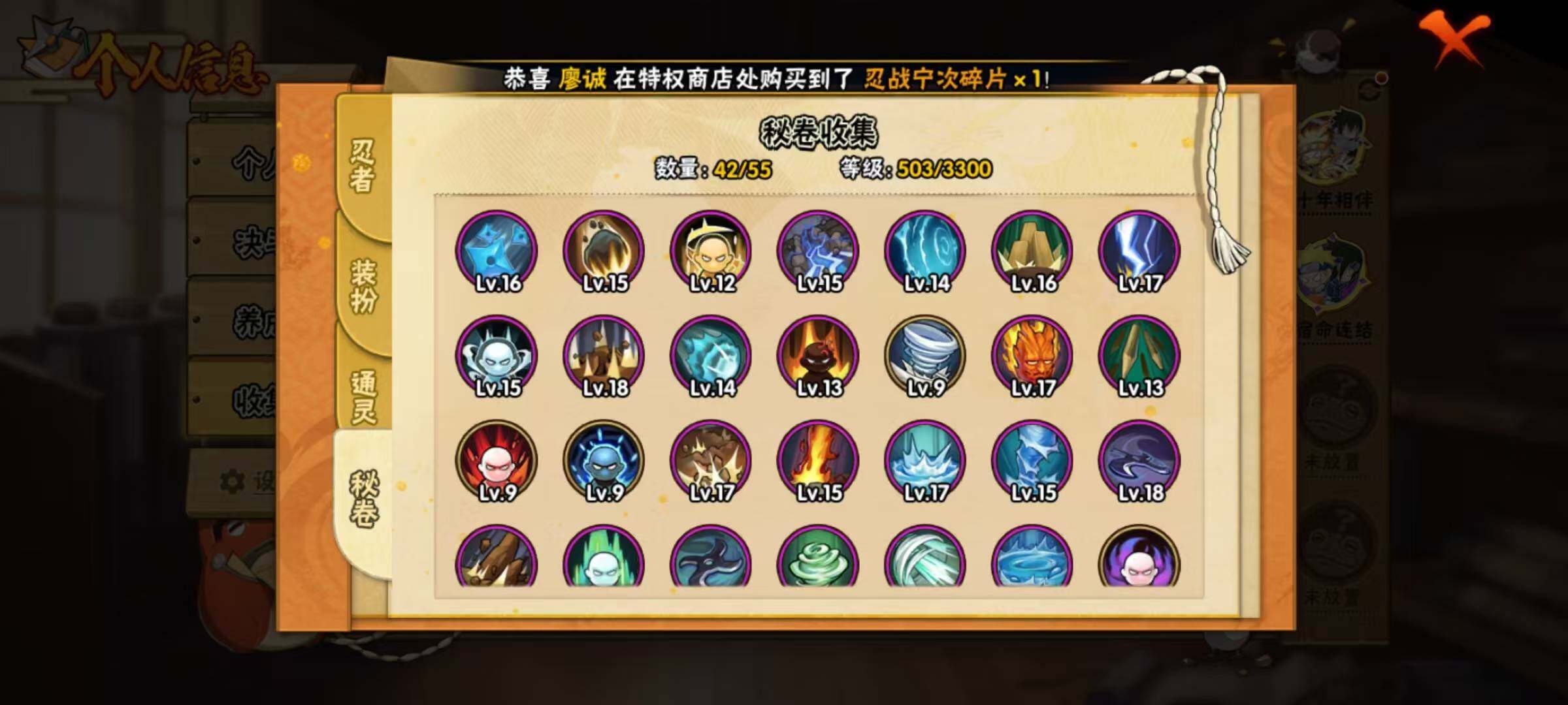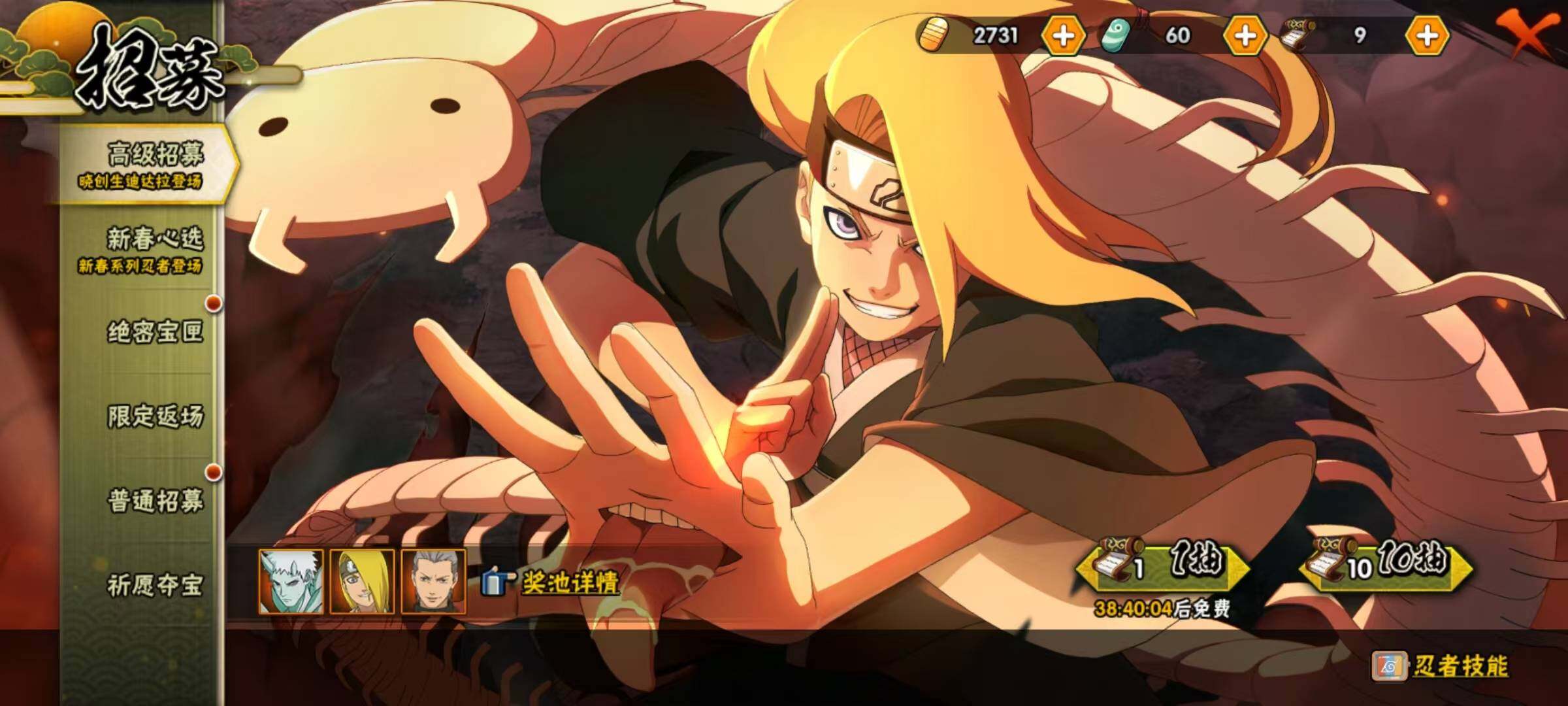 【S级忍者】:宇智波鼬「须佐能乎」(3星),自来也「舞之豪杰」(3星),大蛇丸(3星),自来也「传说中的三忍」(3星),波风水门(3星),漩涡鸣人「九喇嘛连结」(3星),佩恩「天道」(3星),宇智波斑 「白面具」(3星宇智波斑「白面具」),漩涡鸣人「暴怒·第六尾」(3星),漩涡鸣人·宇智波佐助(3星),宇智波带土「十尾人柱力」(3星)