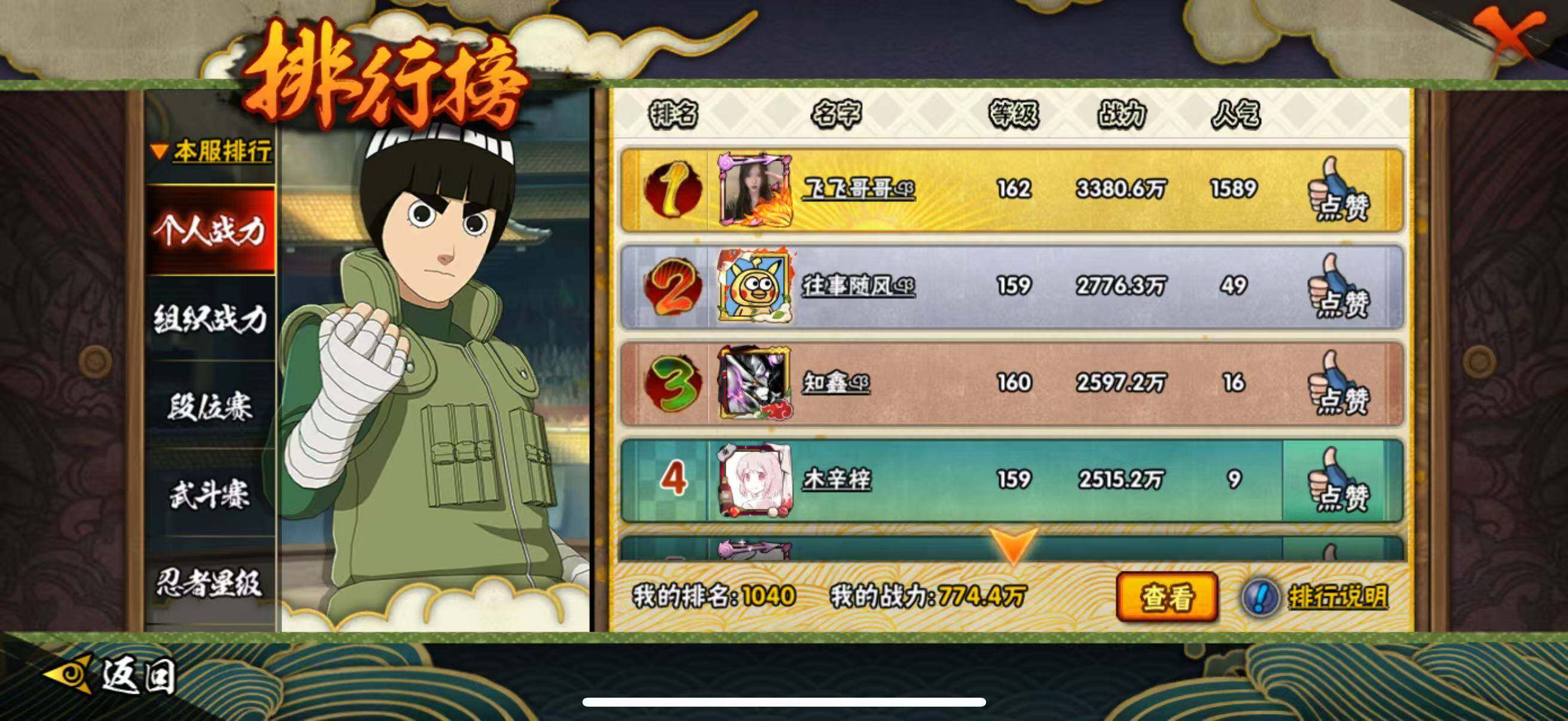 【HYC1727】V10/战力774W/S忍20/A忍29/2星大野木「侠隐江