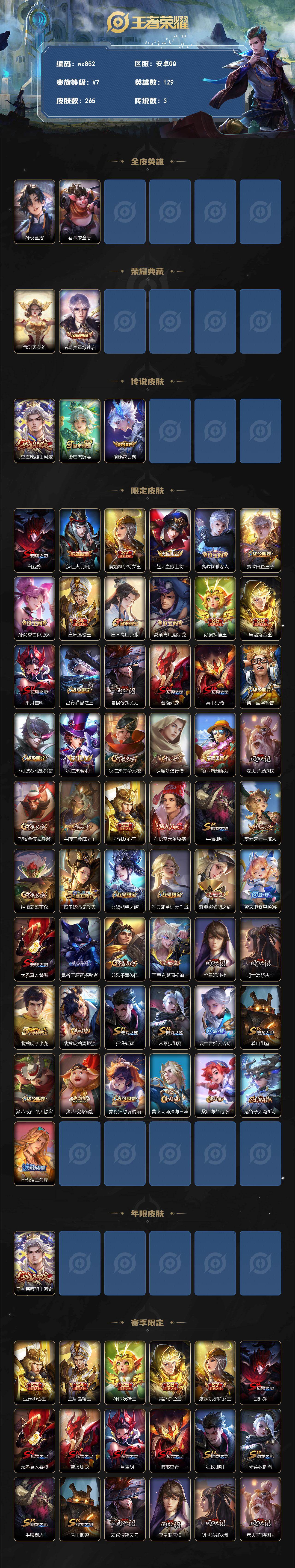 安卓Q-V7-至尊星耀V段位-129英雄-265皮肤-1典藏皮肤-1典藏英雄-