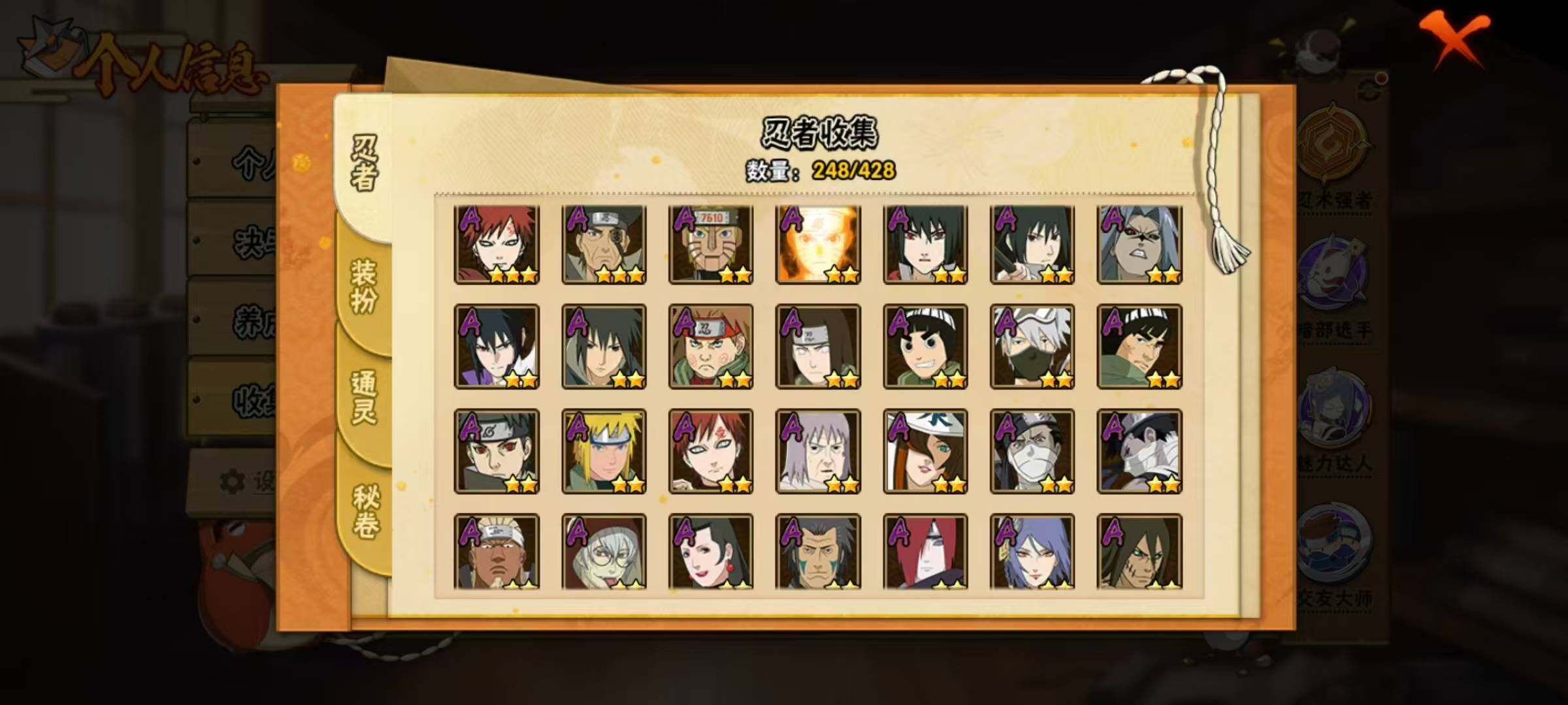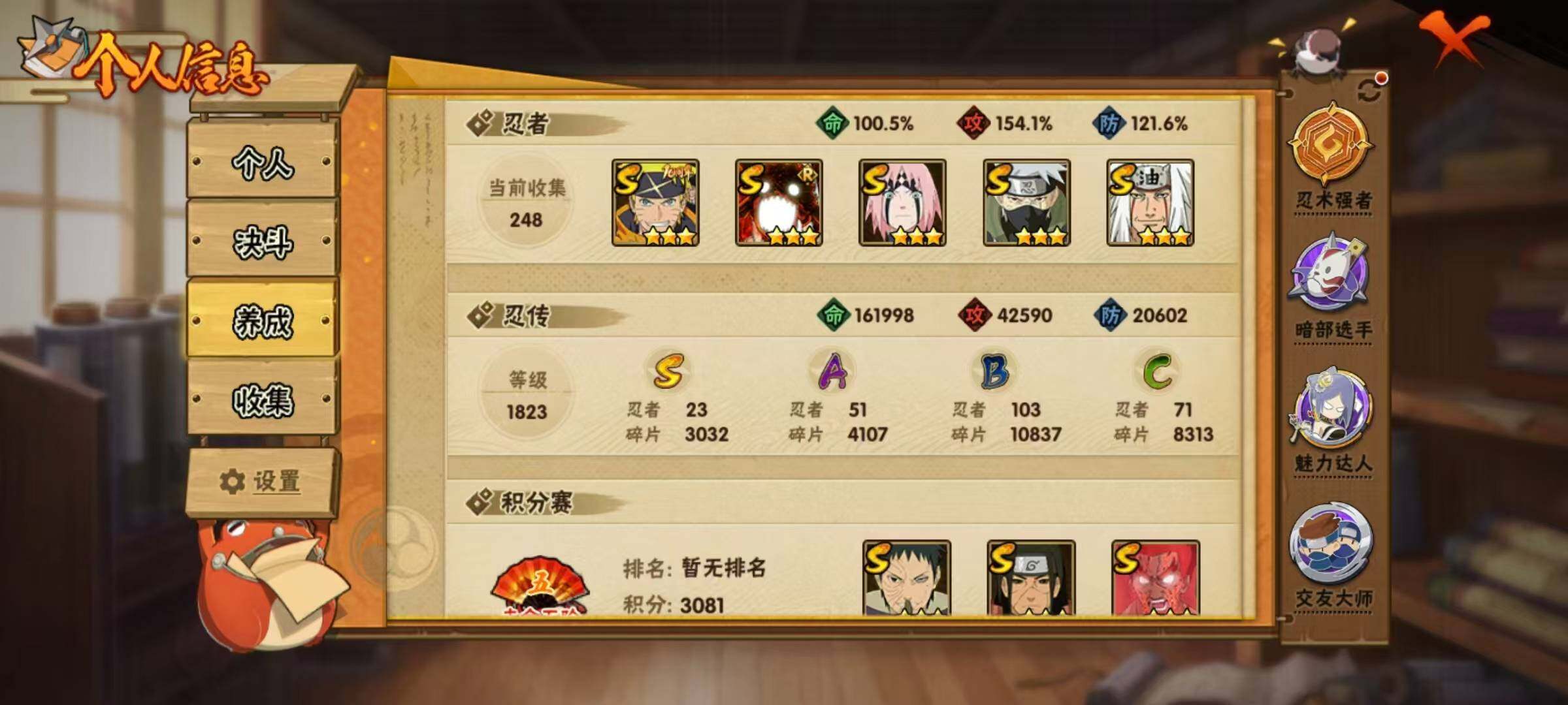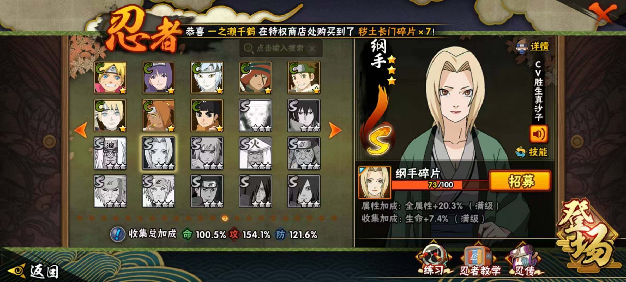 23S级忍者数-51A级忍者数纲手73片,日斩81片,红夜70片,金式82片