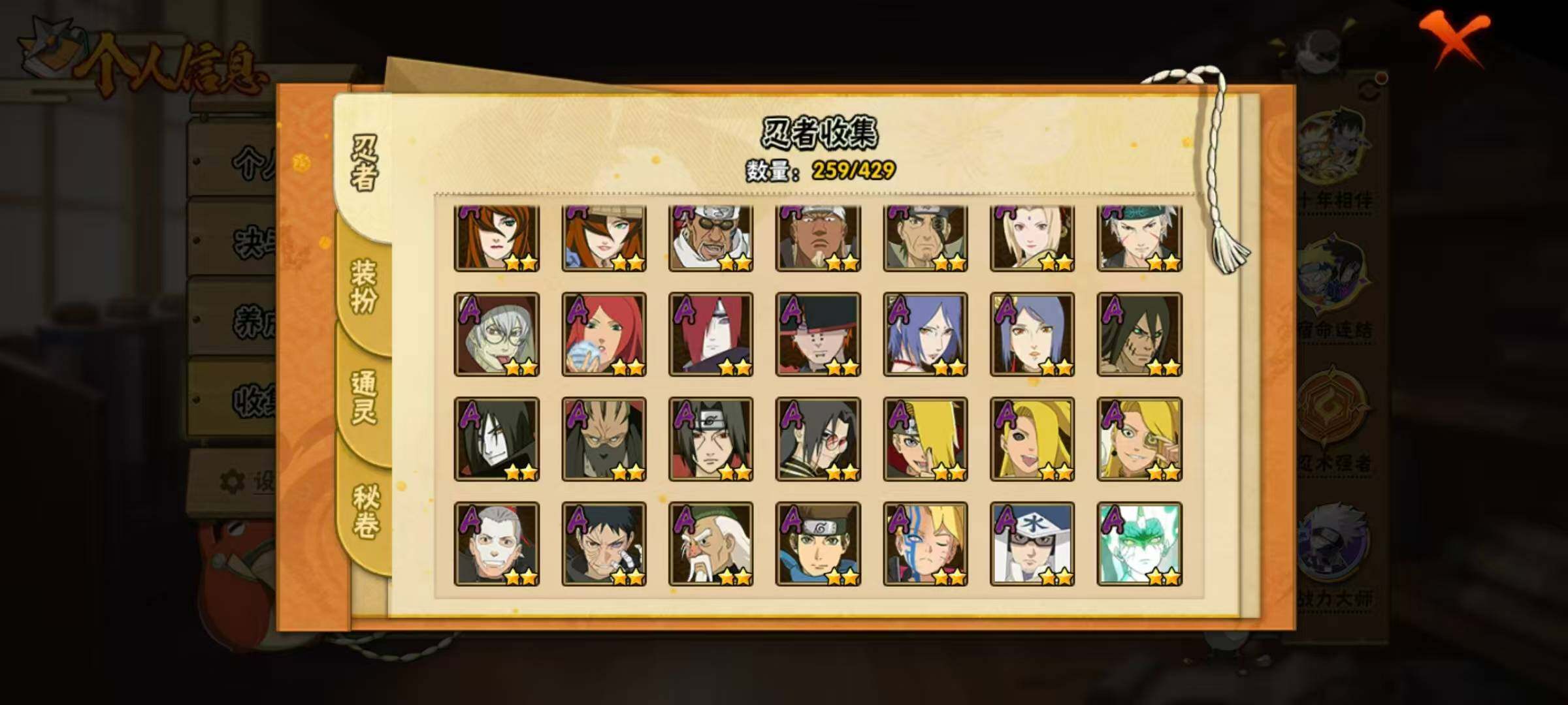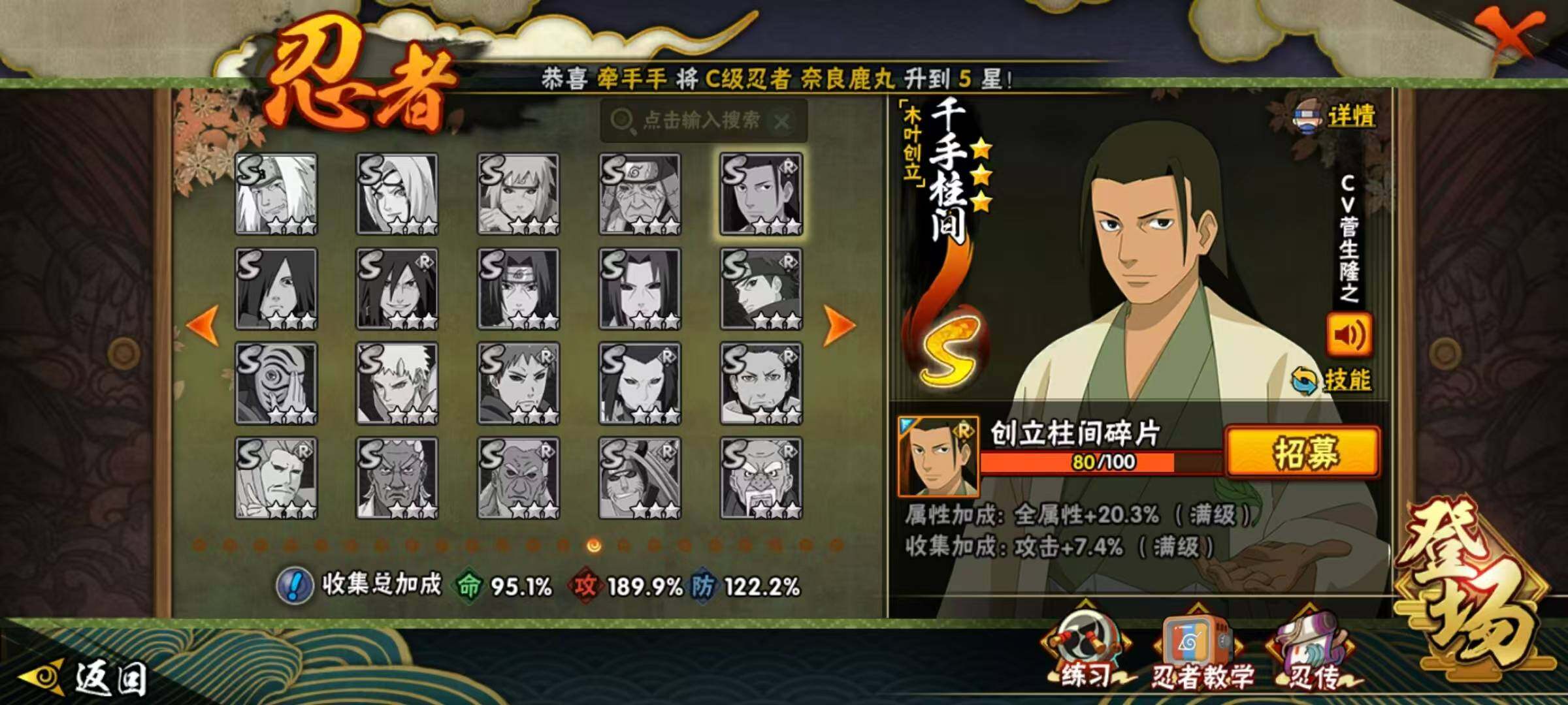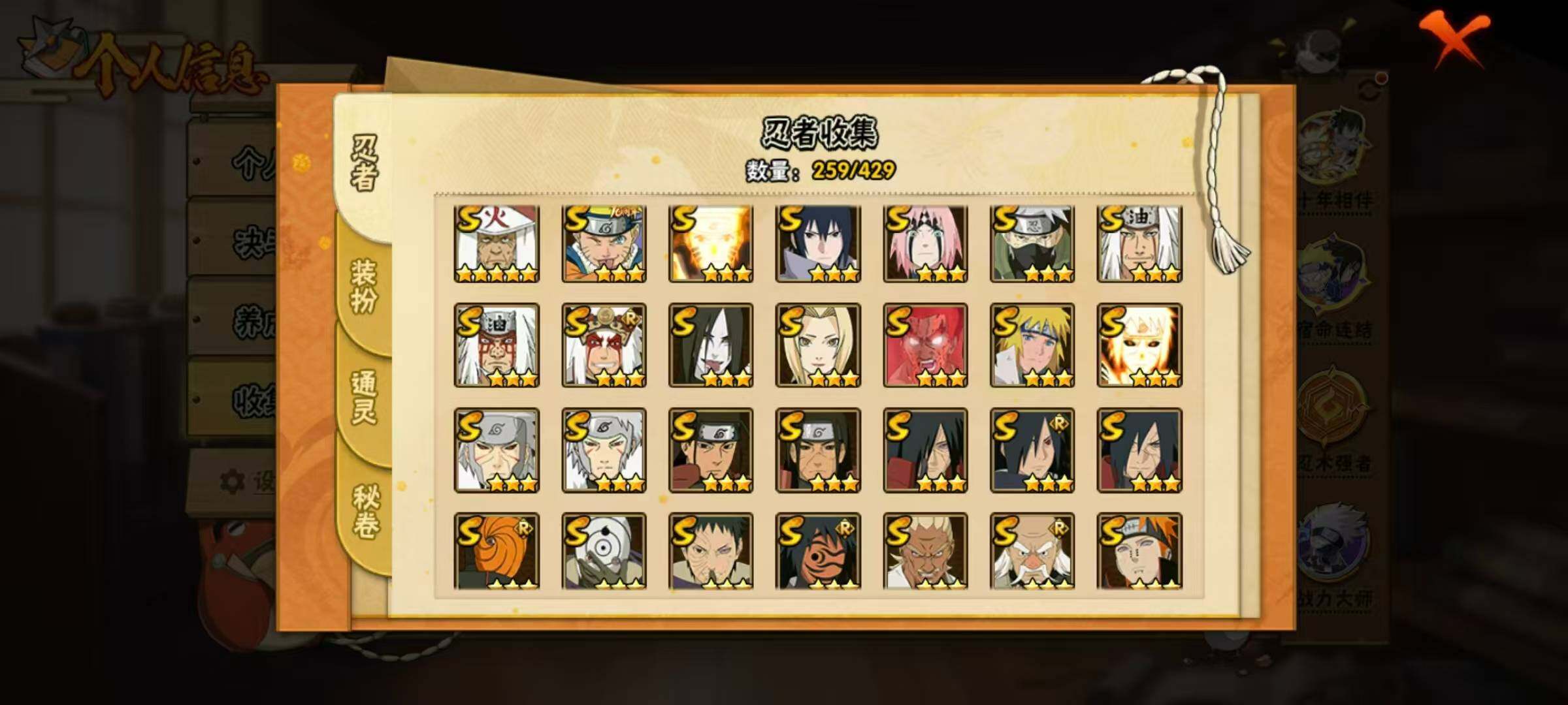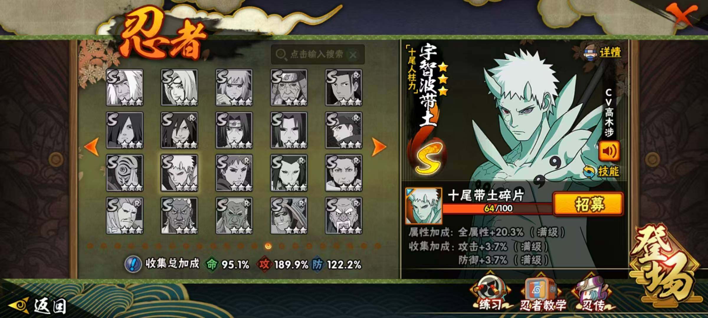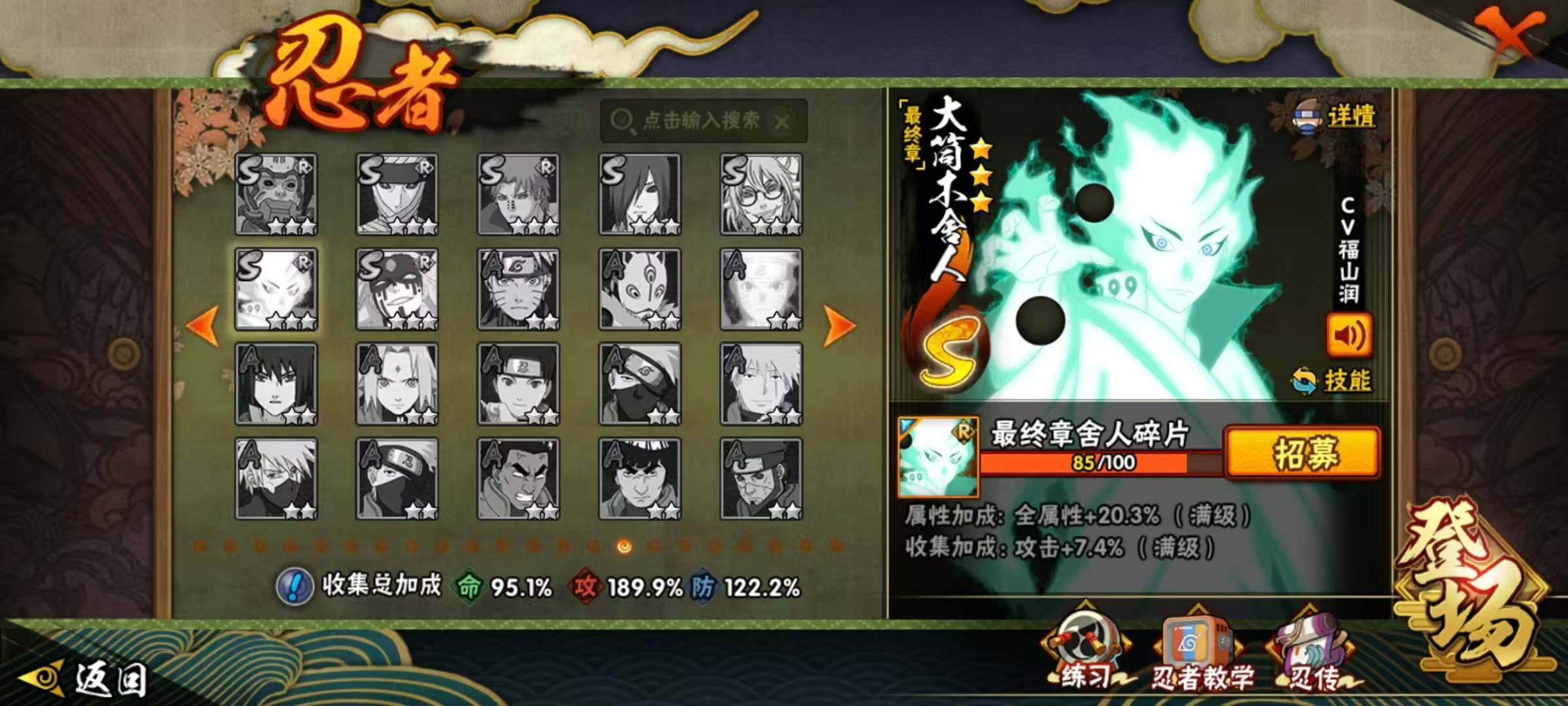 本服74名,创立柱间80片,十尾带土64片,大野木81片,金银角90片,最终章主场景