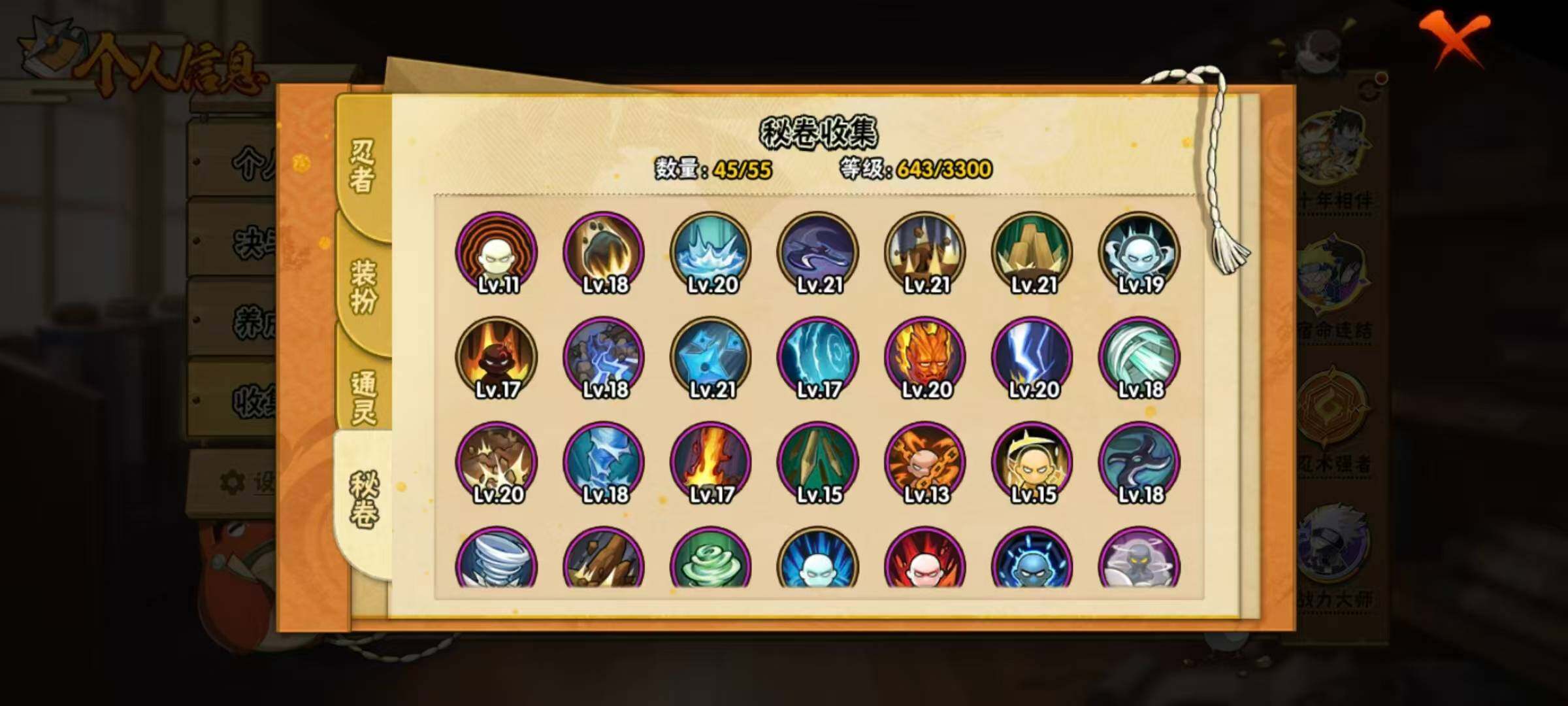 本服74名,创立柱间80片,十尾带土64片,大野木81片,金银角90片,最终章