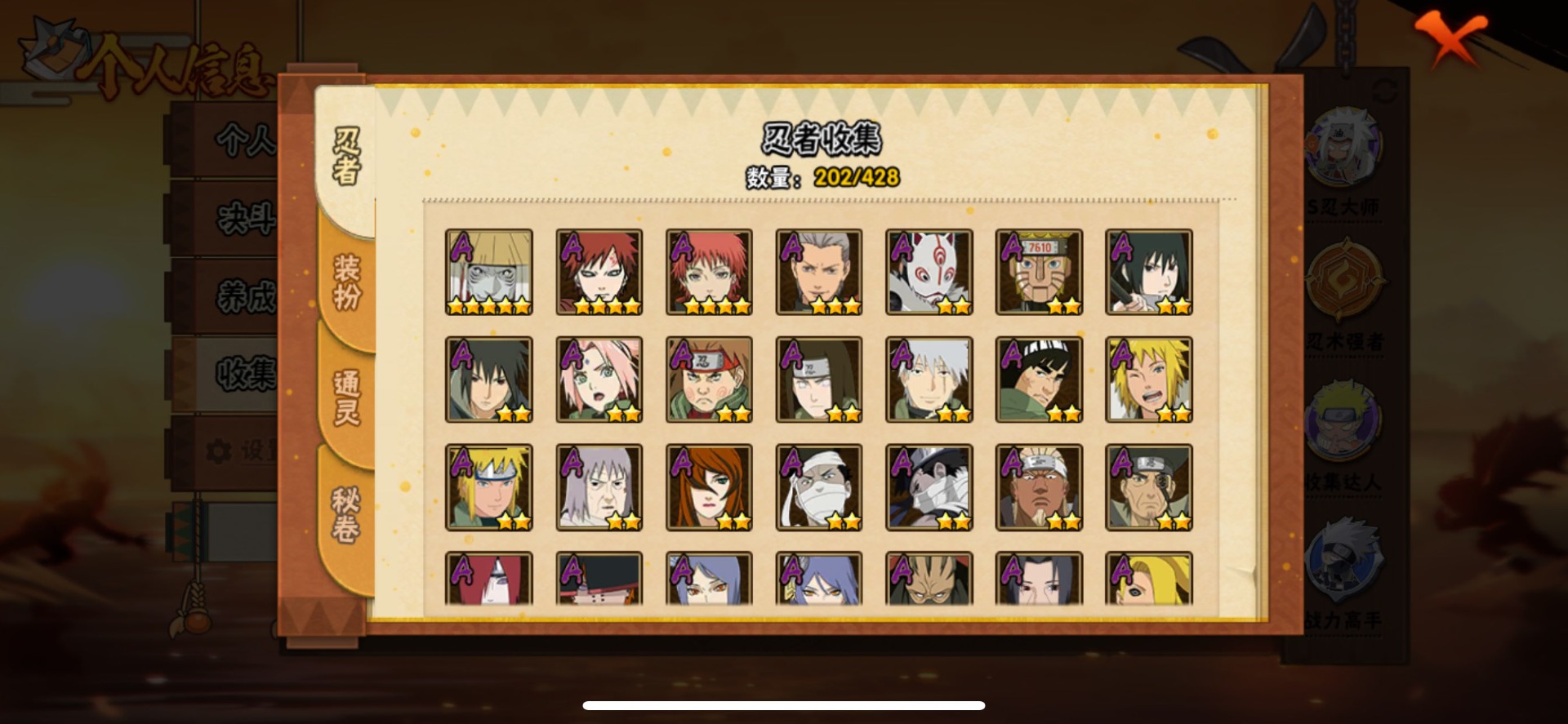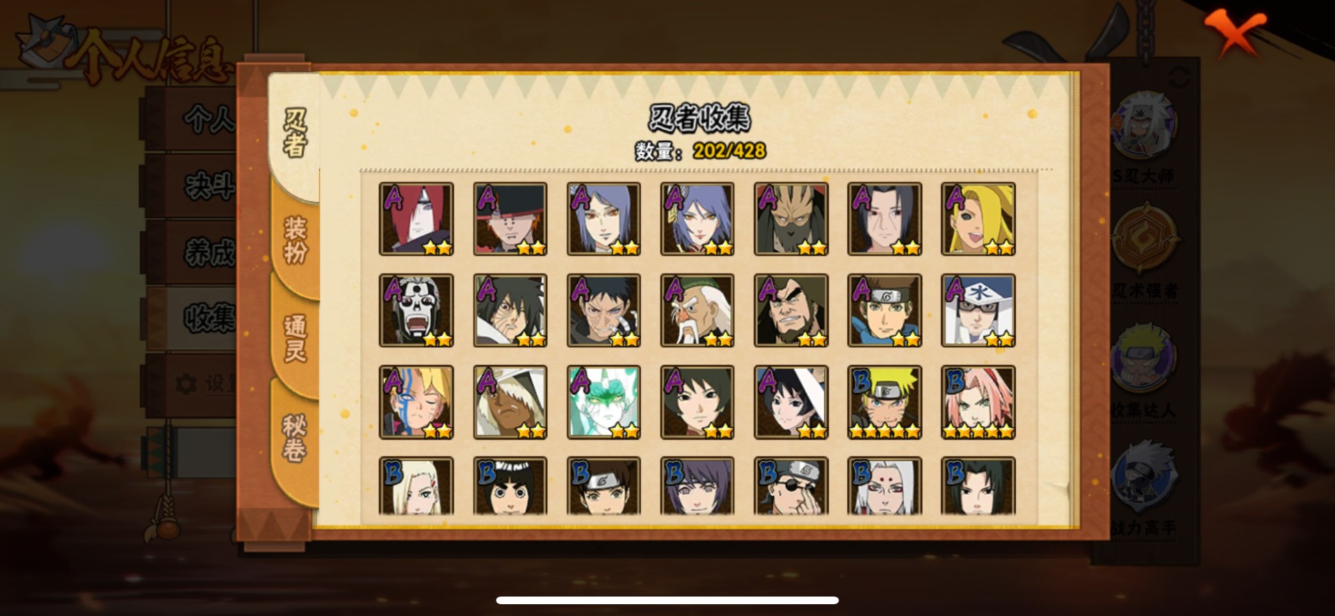 [17874356]实名: 可修改 贵族等级: V12 S忍数: 26 A忍数: 42 战力值(万): 972 S级忍者: 千手柱间「秽土转生」,佩恩·天道「超」,宇智波斑 「木叶创立」,波风水门「秽土转生」,佩恩「天道」,大蛇丸,波风水门,纲手,宇智波鼬 「须佐能乎」,迈特凯「死门」,大野木 「忍界大战」,宇智波带土 「忍界大战」,自来也 「舞之豪杰」,宇智波斑「白面具」,漩涡鸣人 「九喇嘛连