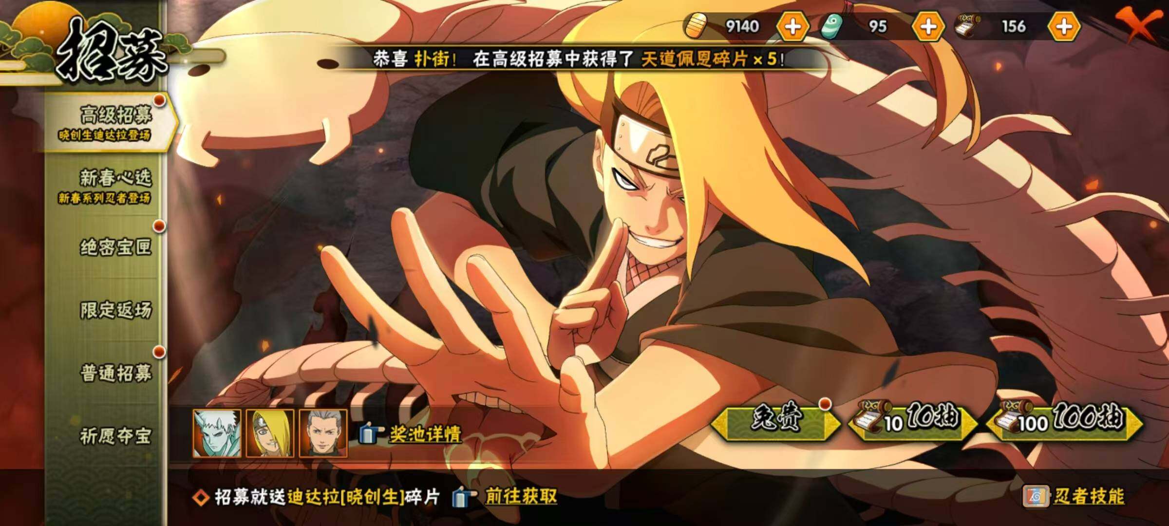 侠隐佐助一千二全套都有,多点券a氪金通,雪山雨隐主场景,156高招券1w金币