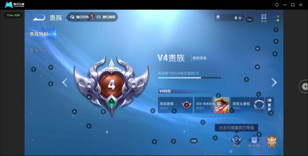 实名: 可修改 贵族等级: V4 英雄数: 125 皮肤数: 121 传说皮: