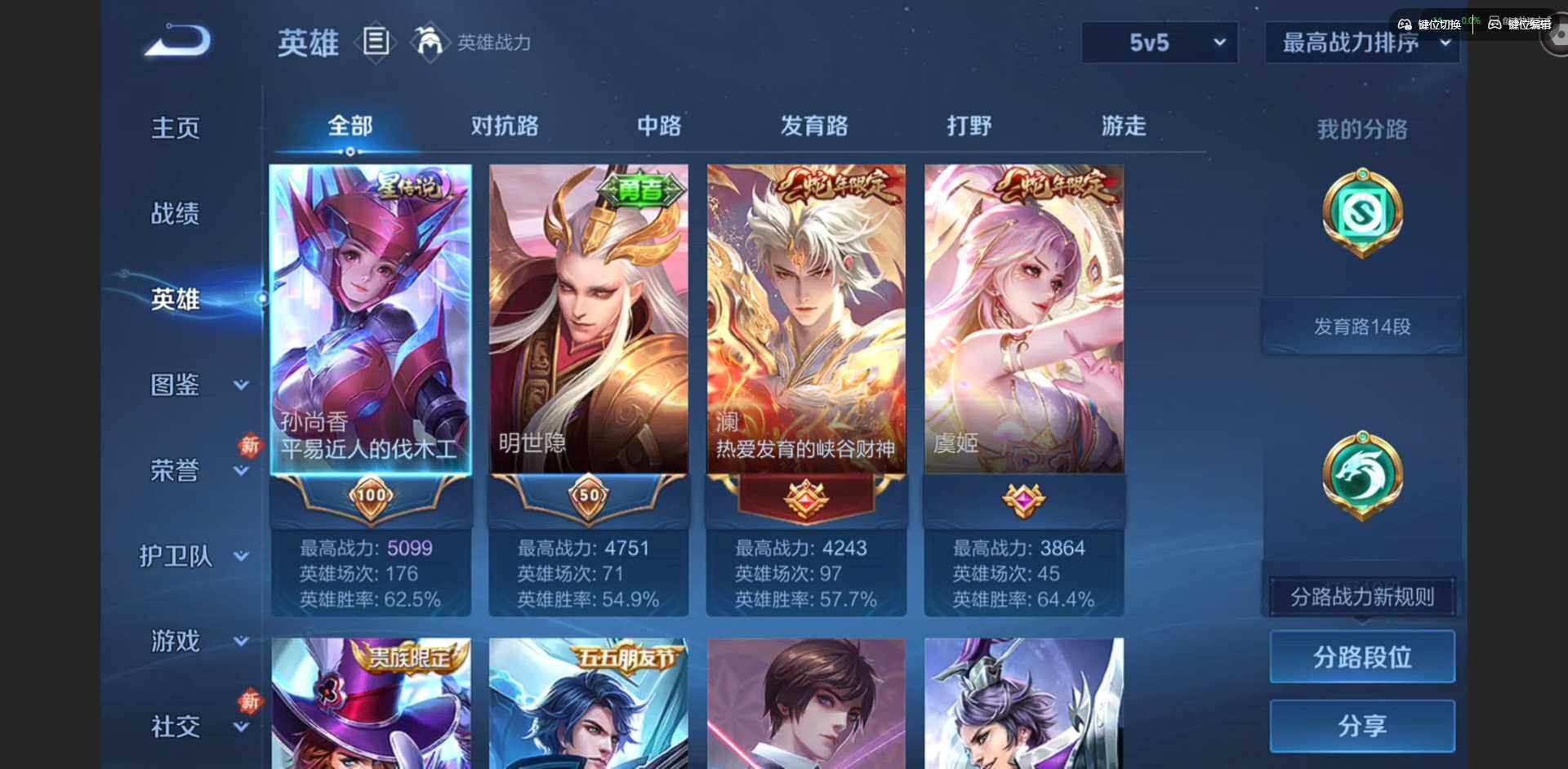 实名: 可修改 贵族等级: V6 英雄数: 124 皮肤数: 123 星传说: