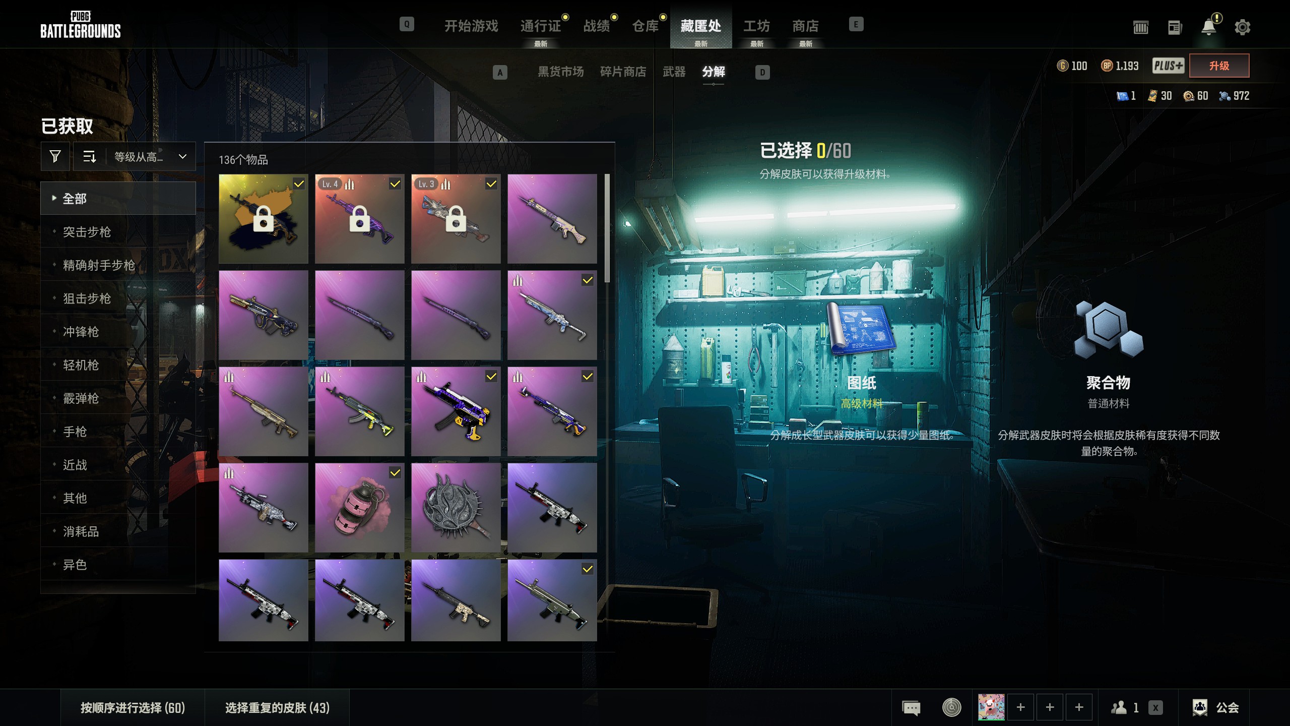 自用小号 免费版 没升豪华 无消费 4级美杜莎黑金异色 3级狼头大菠萝 彩色烟雾弹仓库1图纸