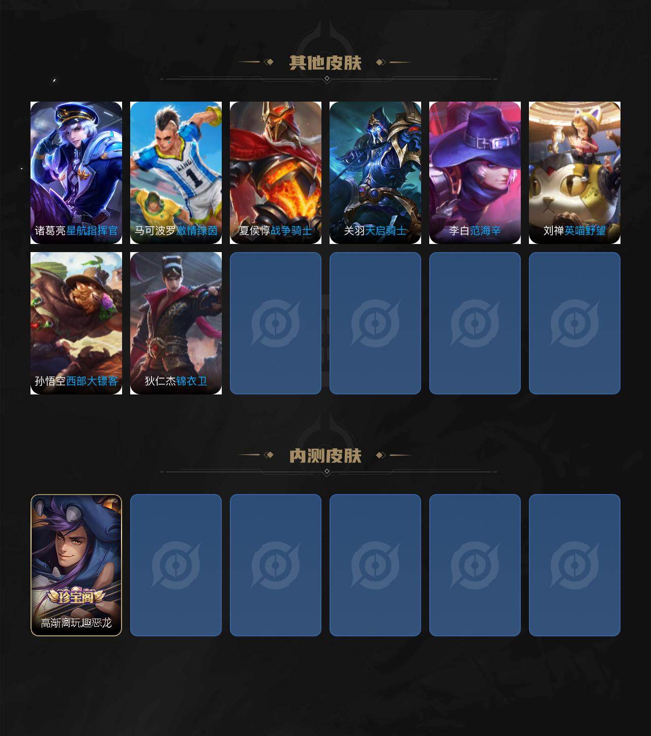 【限定皮肤】:蒙犽顽岩魄,姜子牙天穹之誓,狄仁杰阴阳师,赵云皇家上将