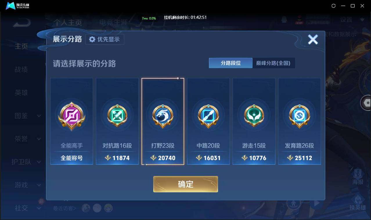 20/【W6596】【亮点:6.3K场次-打野23段】安卓Q-不可二次-贵6-128英雄-219皮肤-1典藏-6传说-64限定-3按键-贵族积分17300-