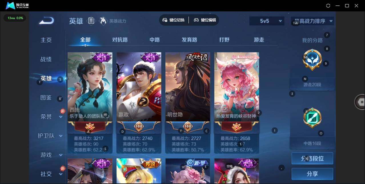 实名: 可修改 贵族等级: V5 英雄数: 127 皮肤数: 148 传说皮: