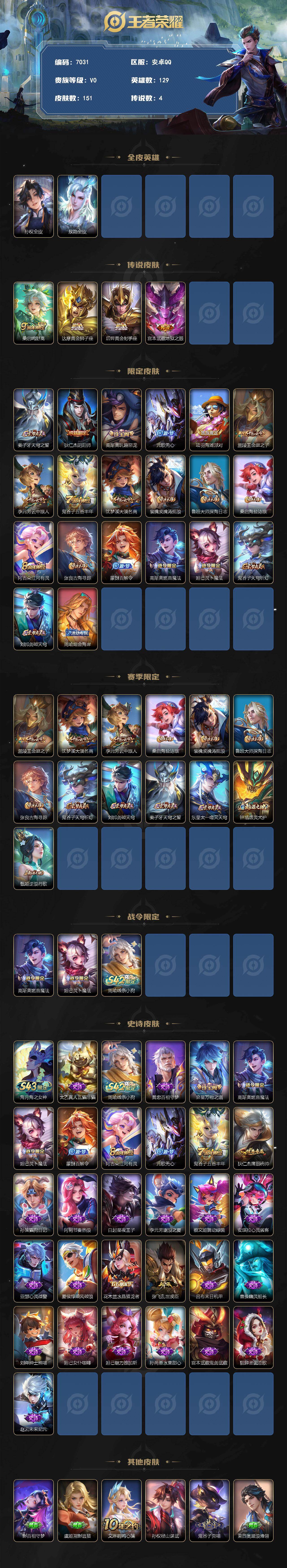 7646/九位数QQ 九位数 QQ贵族 4-151皮4传说 安卓手Q422区151皮0典藏4传说0无双V0
