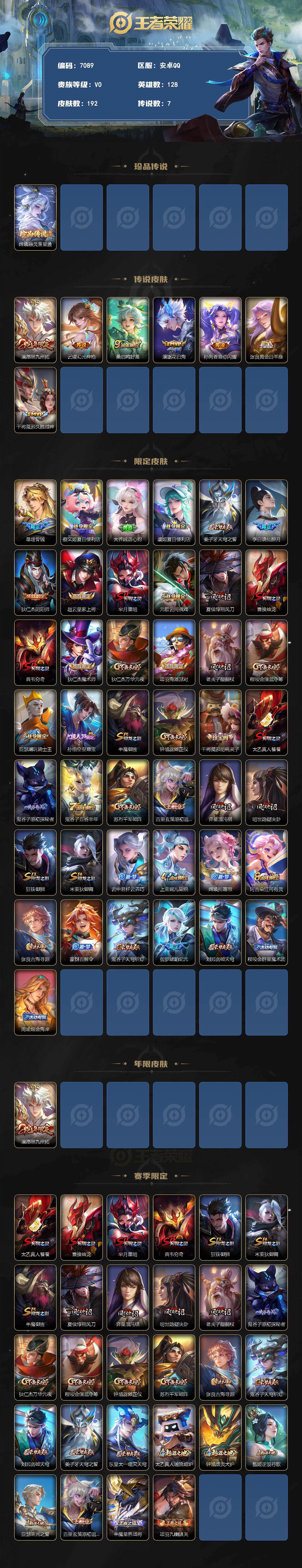 贵族7-贵族积分25889-192皮0典藏7传说0无双1珍品传说 安卓手Q1