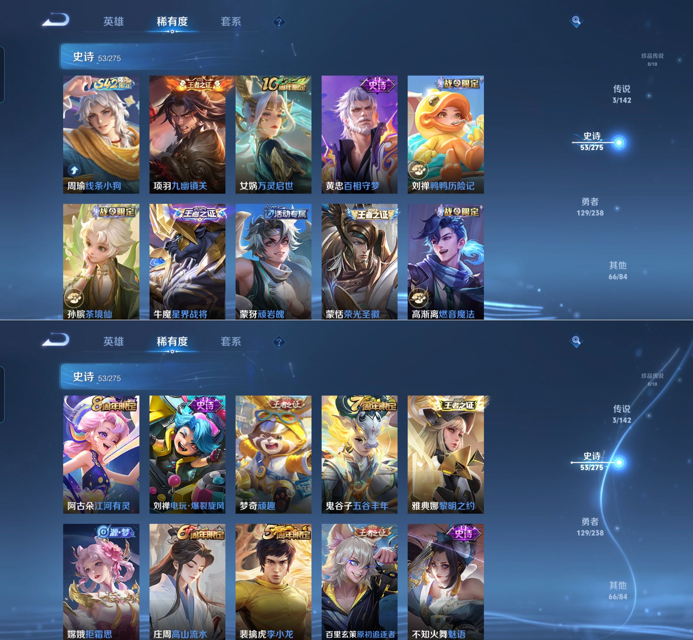 【史诗皮肤】 蔬乡物语 茶境仙 星界战将 布丁狗之约 谧流熔炉 鸭鸭历险记 线条小狗 九幽镇关 王牌新星 江河有灵 决胜大满贯 荣光圣徽 百相守梦 漠中幻影 顽岩魄 万灵启世 顽趣