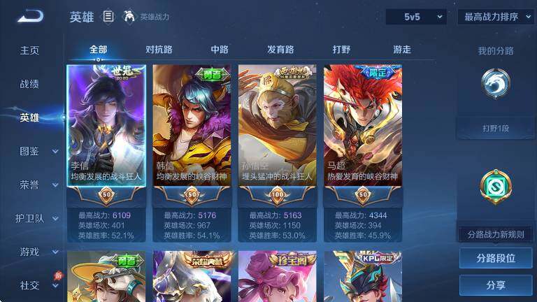 贵族6-243皮-1典藏-8传说-2全皮英雄-5改名卡 安卓手Q346区