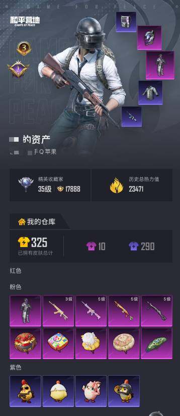 【王者荣耀连体和平精英】贵族等级: V4 英雄数: 114 皮肤数: 84 传