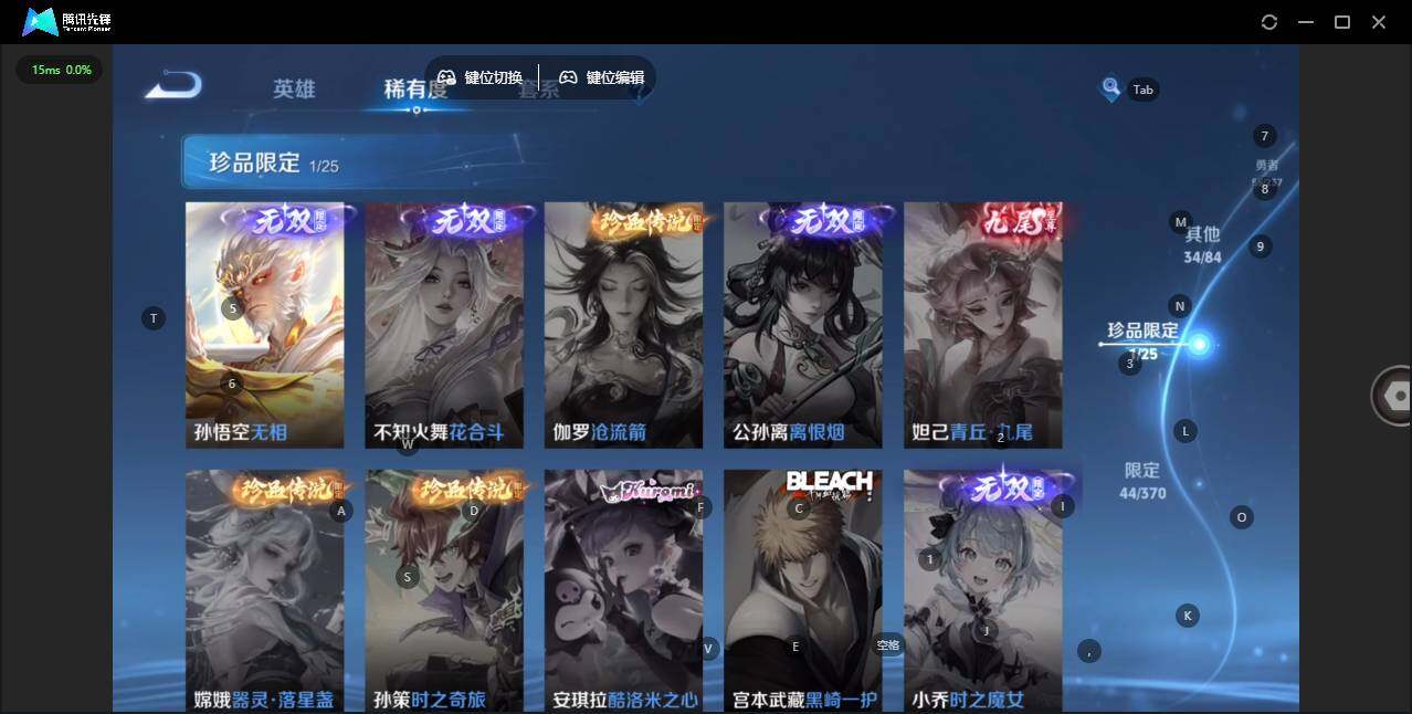 实名: 可修改 贵族等级: V7 英雄数: 126 皮肤数: 134 无双皮: