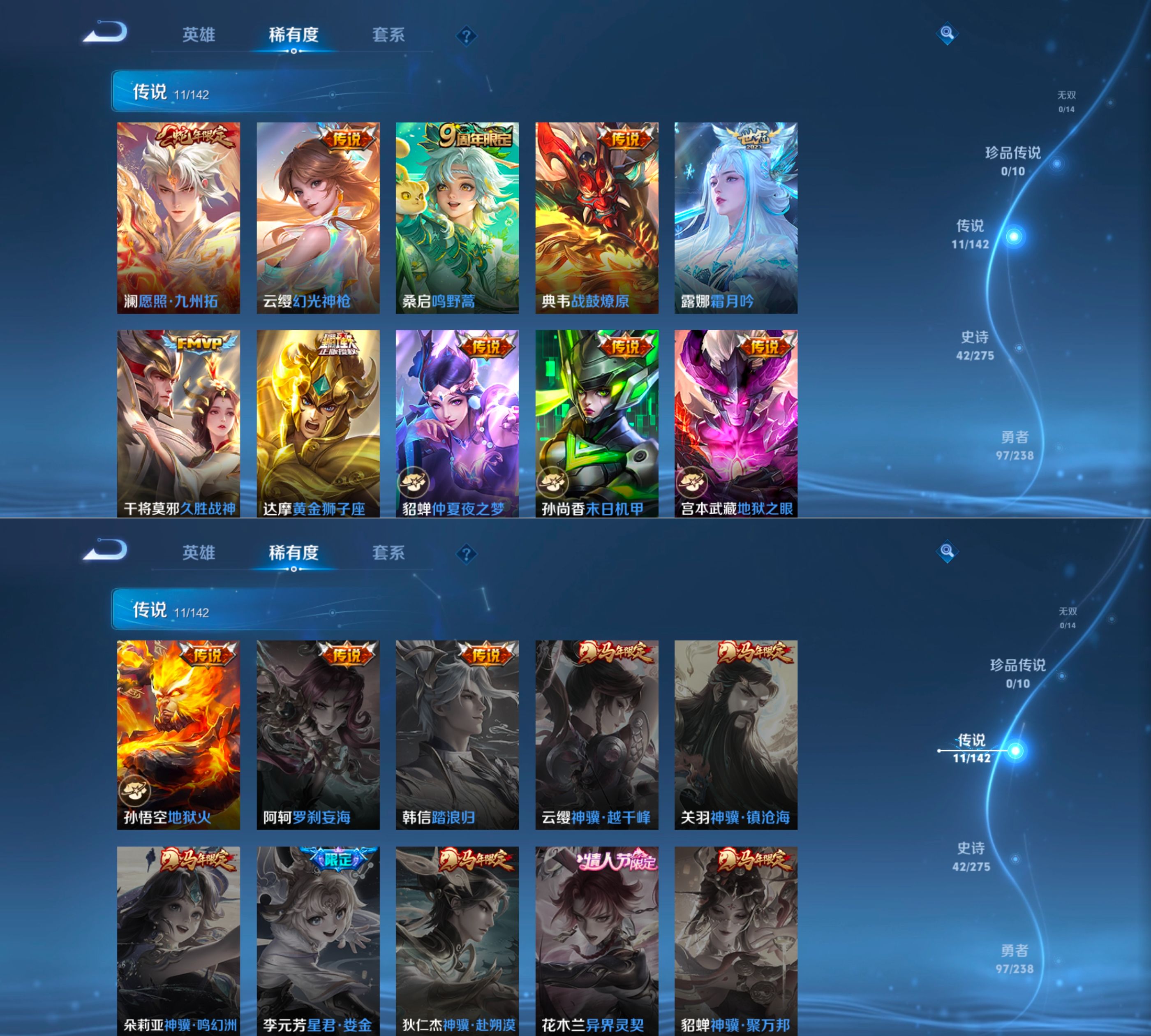 24074/MWZ106108有二次【 1典藏 11传说 2星传说 幽冥之眼 金色仲夏夜 42史诗 V7 】安卓Q-187皮肤-126英雄