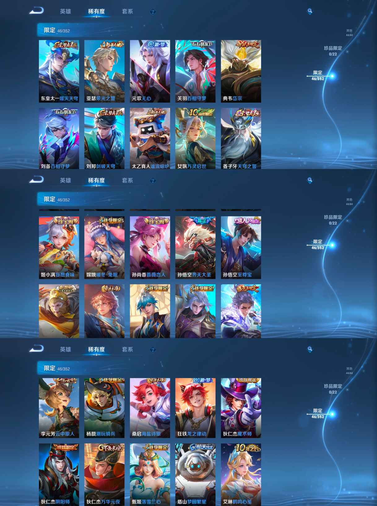 DSW2577【V8 17传说王者25星打野22段】安卓Q-189皮肤-125英雄 【传说皮肤】 山海·苍雷引 齐天大圣 碎云 无双飞将 超时空战士 猫影幻舞 地狱之眼 黄金射手座 炽阳神光 绛天战甲 一念神魔 时之恋人 胖达荣荣 地狱火 云鹰飞将 启明星使 淬星耀世 【史诗皮肤】 岱宗 龙之律动 飞衡 电玩小子 神威 至尊宝 孙行者 山海·玄木吟 聚星闪耀 布丁