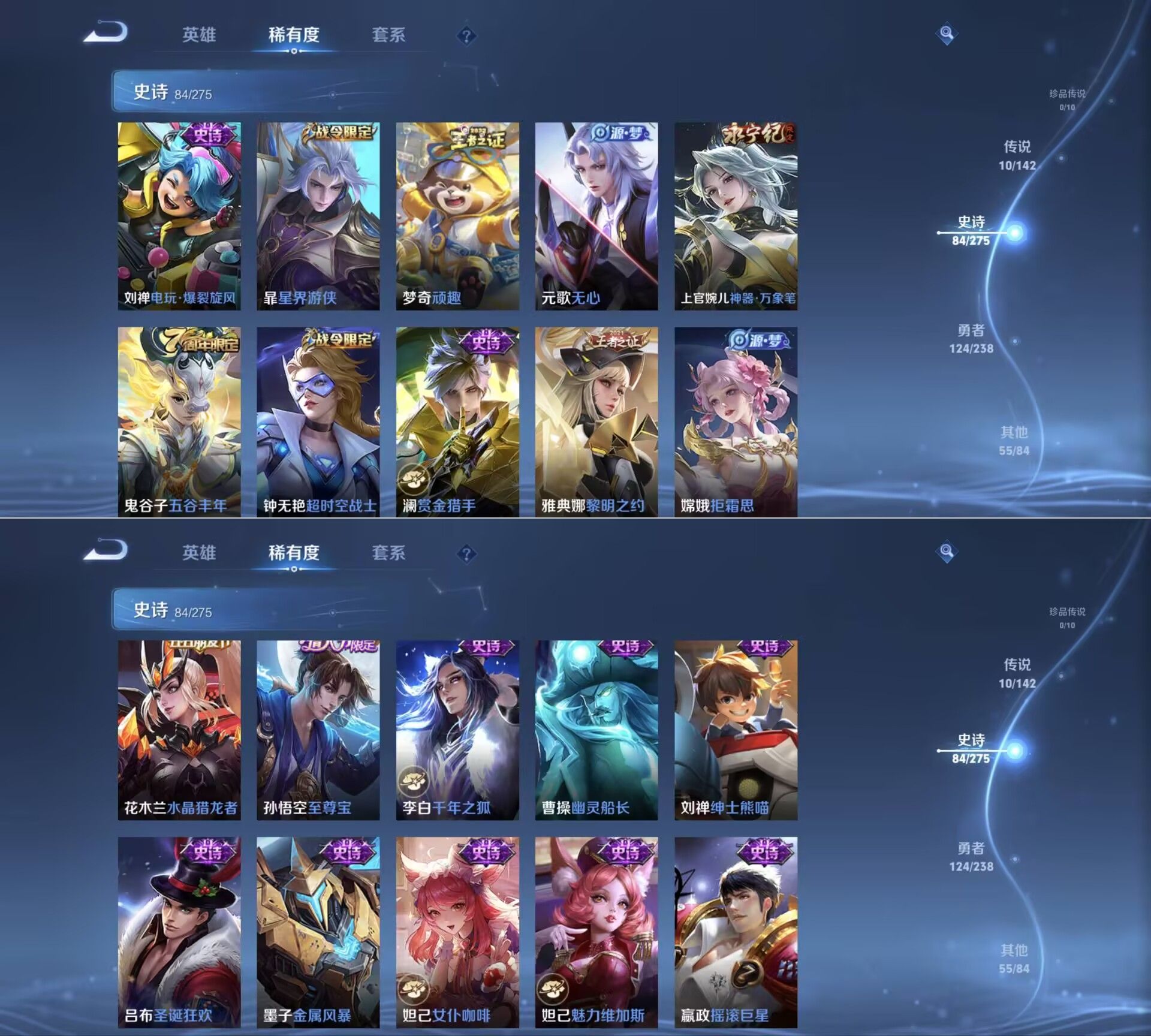 147/MWZ106355有二次 【 V7 127英雄 274皮肤 1典藏 10传说 4星传说(幽冥火 幽冥之眼 星际治安官 时之思念)】安卓Q-274皮肤-127英雄