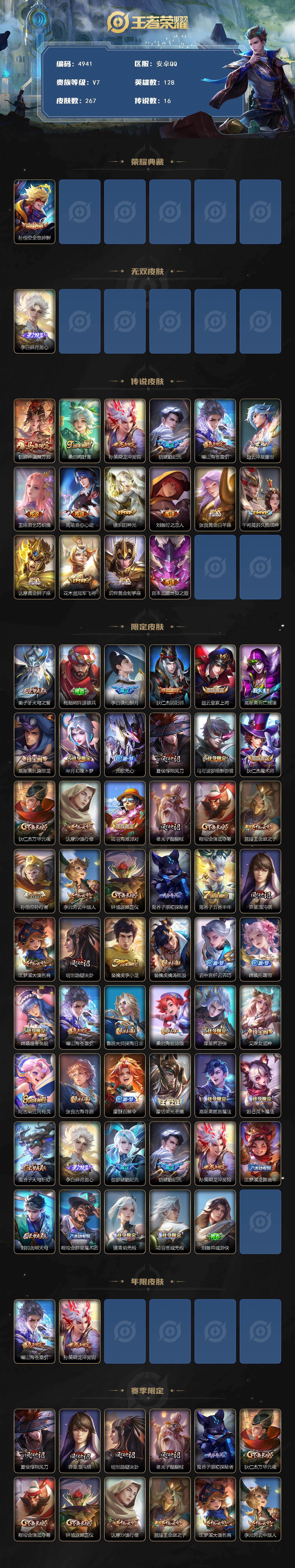 秋月华灯天幕贵族7-267皮-1典藏-1无双-16传说-5全皮-改名卡14-星