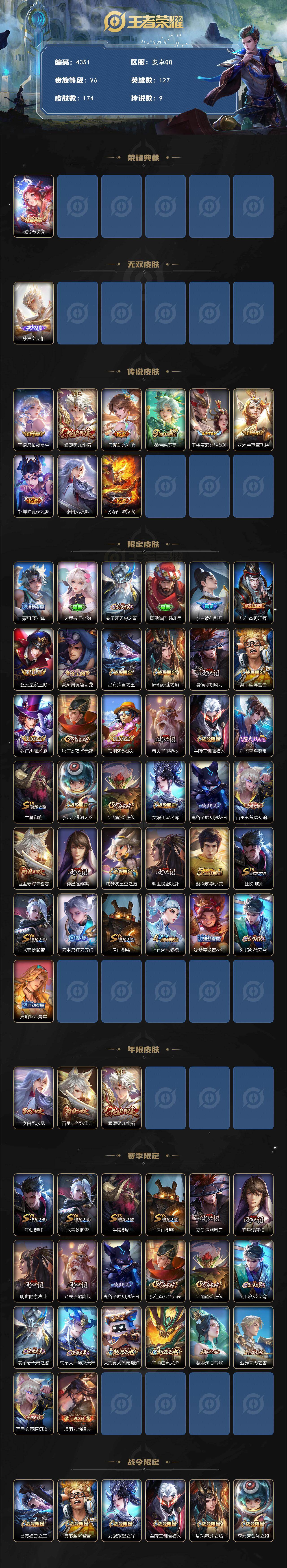 贵族6-174皮-1典藏-1无双-9传说-改名卡2-星传说幽冥火-金色仲夏夜安卓手Q154区174皮1典藏9传说1无双V6