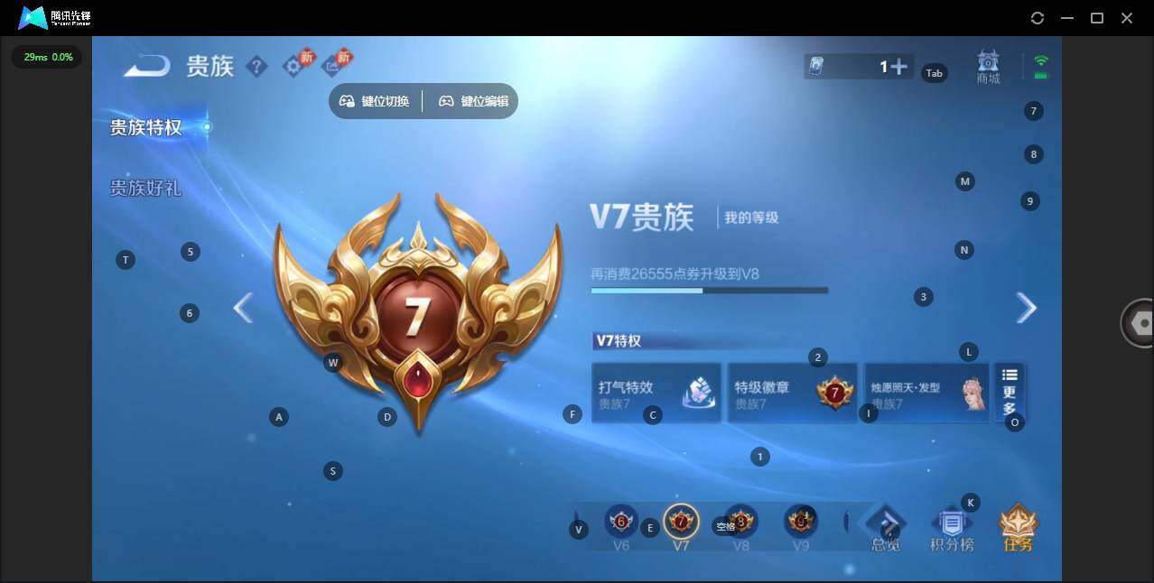 实名: 可修改 贵族等级: V7 英雄数: 125 皮肤数: 165 荣耀水晶
