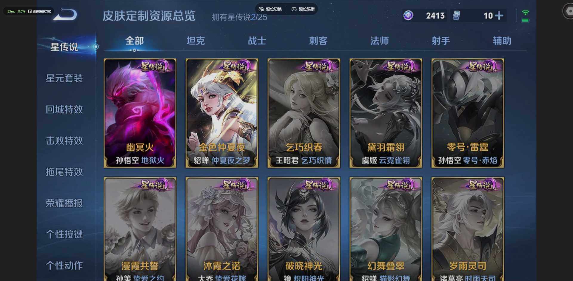 实名: 可修改 贵族等级: V7 英雄数: 128 皮肤数: 246 荣耀水晶: 弑枪猎影 星传说: 幽冥火,金色仲夏夜 传说皮: 黄金狮子座,云鹰飞将,地狱火,仲夏夜之梦,地狱之眼,飞鸢探春,妄想实况,琥珀纪元马超,玄雷天君 限定皮: 李小龙,青龙志,梅西,大圣娶亲,高山流水,五谷丰年,怒海麟威