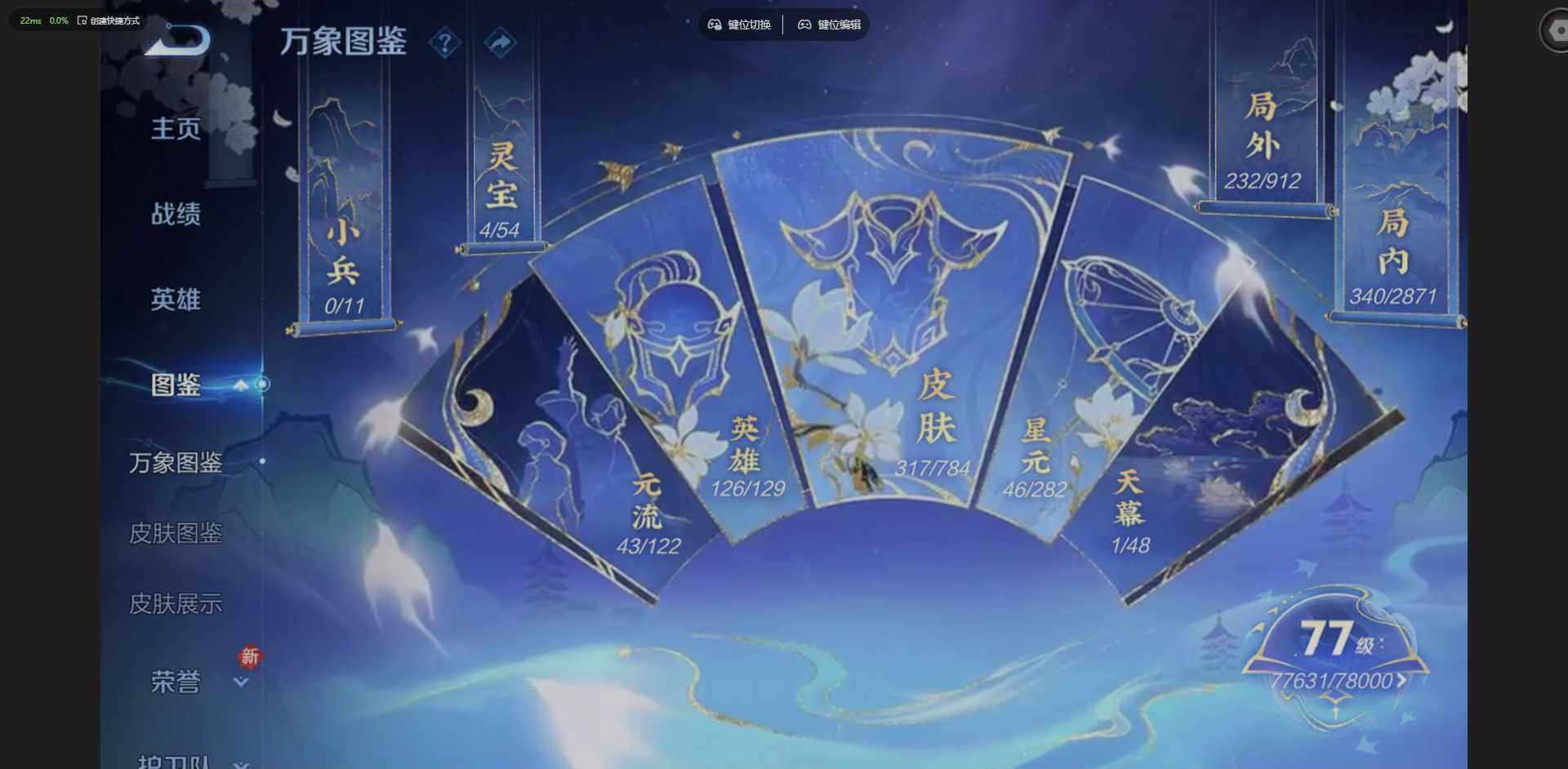 实名: 可修改 贵族等级: V8 英雄数: 126 皮肤数: 317 荣耀水晶