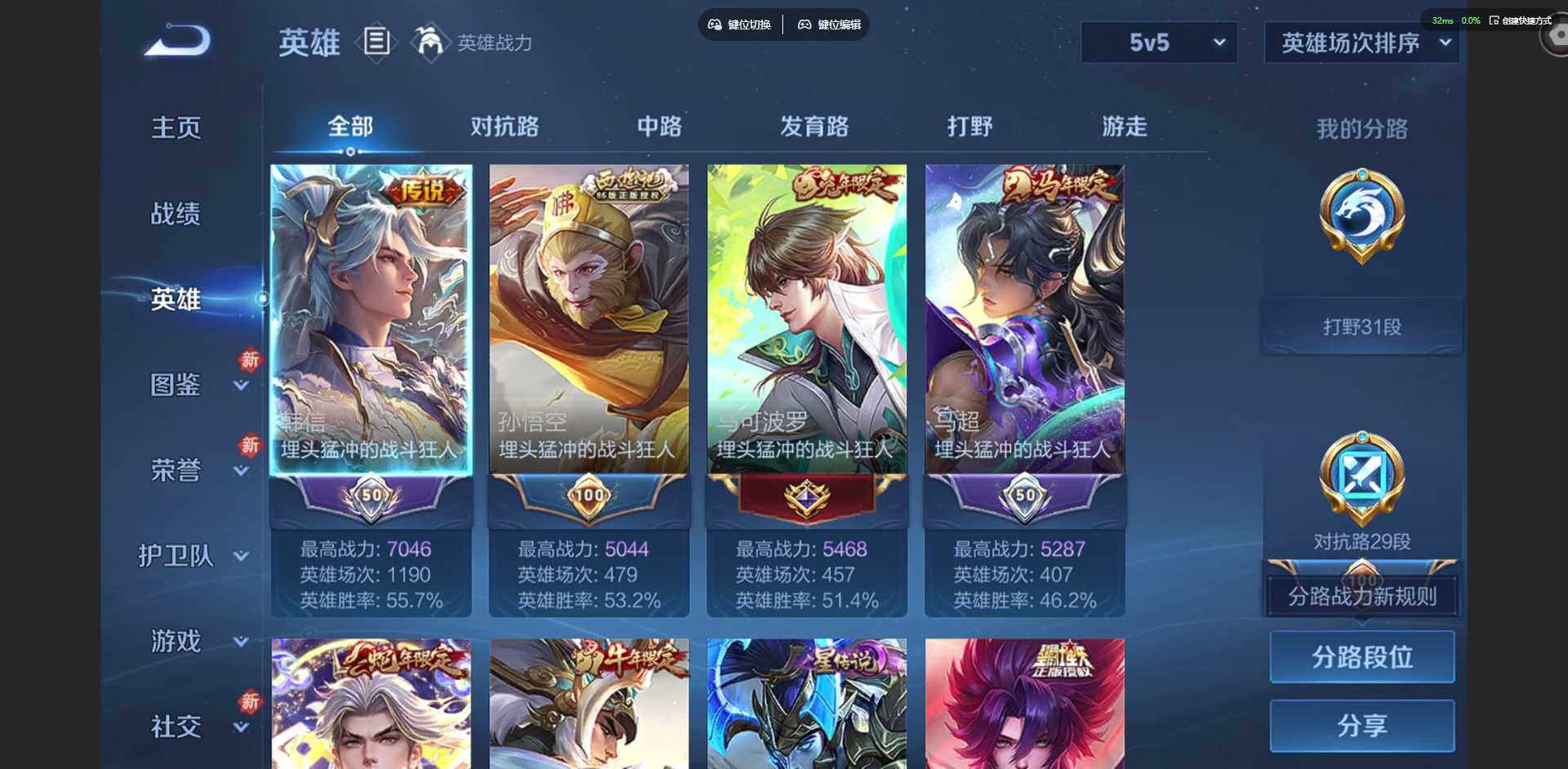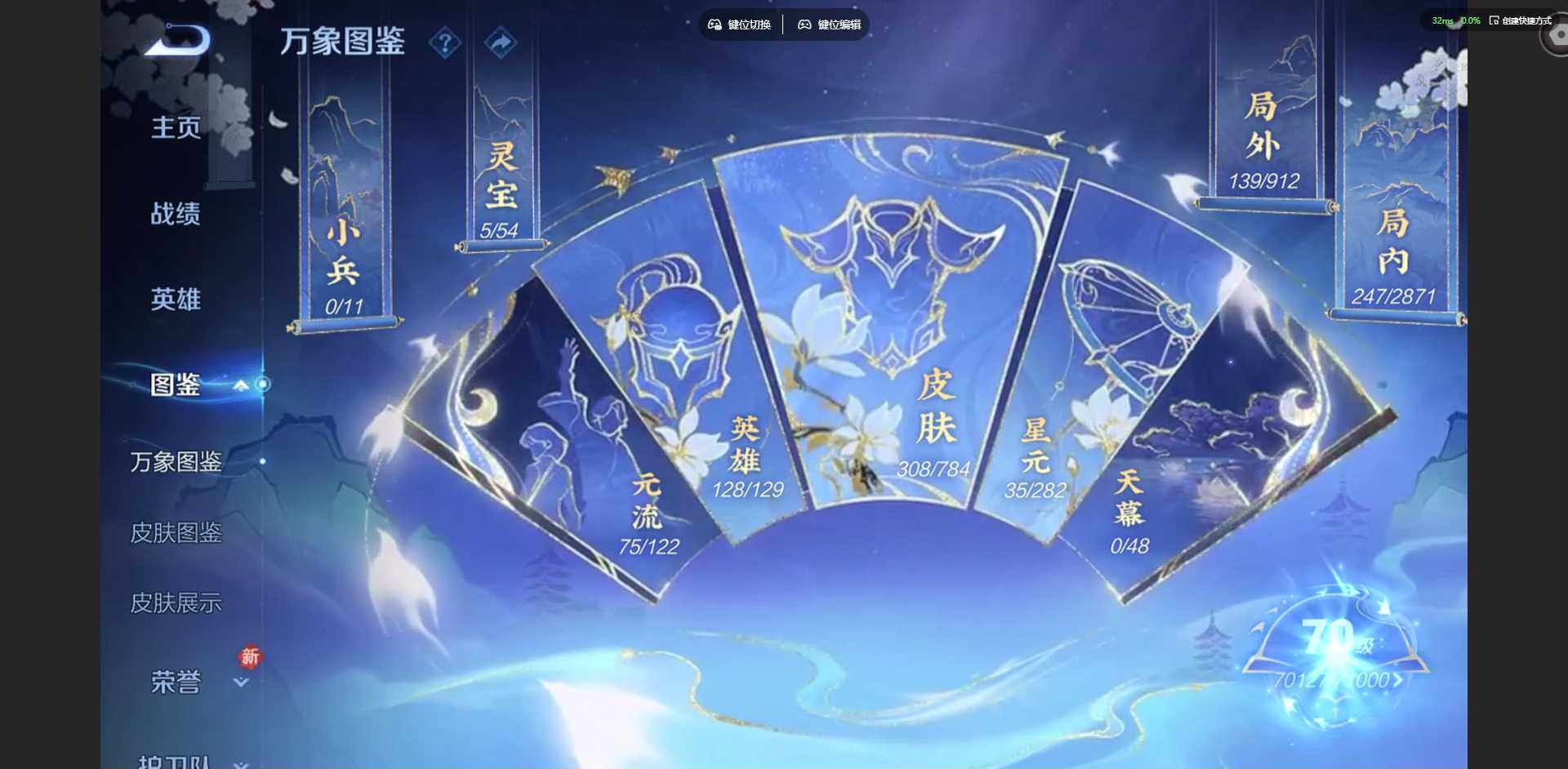 贵族等级: V8 英雄数: 128 皮肤数: 308 荣耀水晶: 鸣剑·曳影