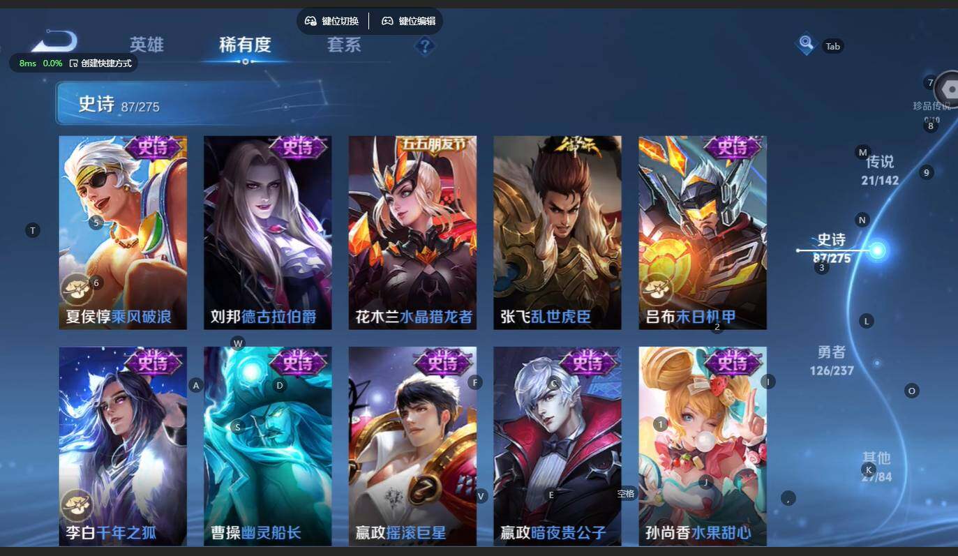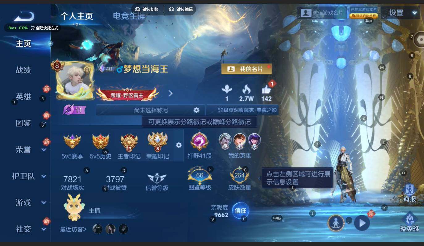 打野41段 发育路36段!苹果WX-V8-最强王者段位-128英雄-264皮肤