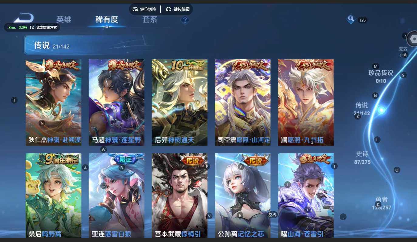 【传说皮肤】:狄仁杰神骥赴朔漠,马超神骥逐星野,后羿神树通天,司空震愿照山河定,澜愿照九州拓,桑启鸣野