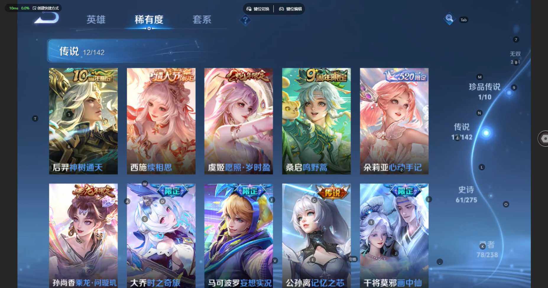 苹果WX-V7-至尊星耀I段位-119英雄-181皮肤-1典藏皮肤-2无双-1珍品传说-12传说-60史诗