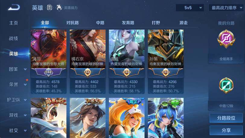 贵族9-贵族积分115887-331皮2典藏34传说1无双-5个英雄全皮
