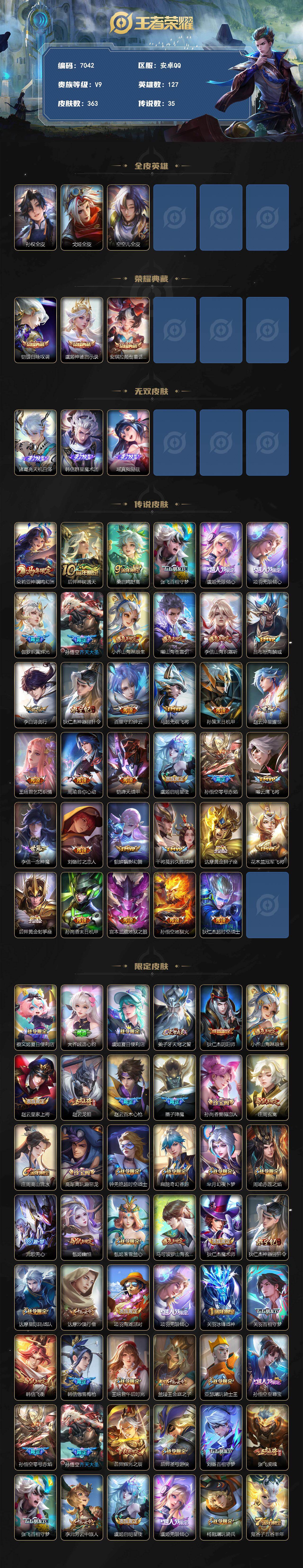 贵族9-贵族积分175602-363皮3典藏35传说3无双-4个英雄全皮 不羡