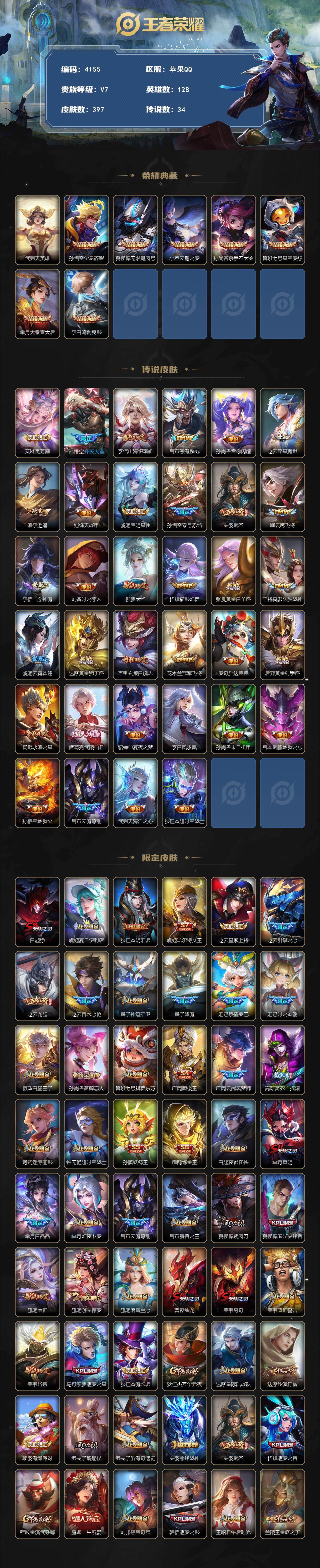 可二次 香香机甲 金色貂蝉 宫本幽冥苹果手Q14区397皮7典藏34传说0无双V10