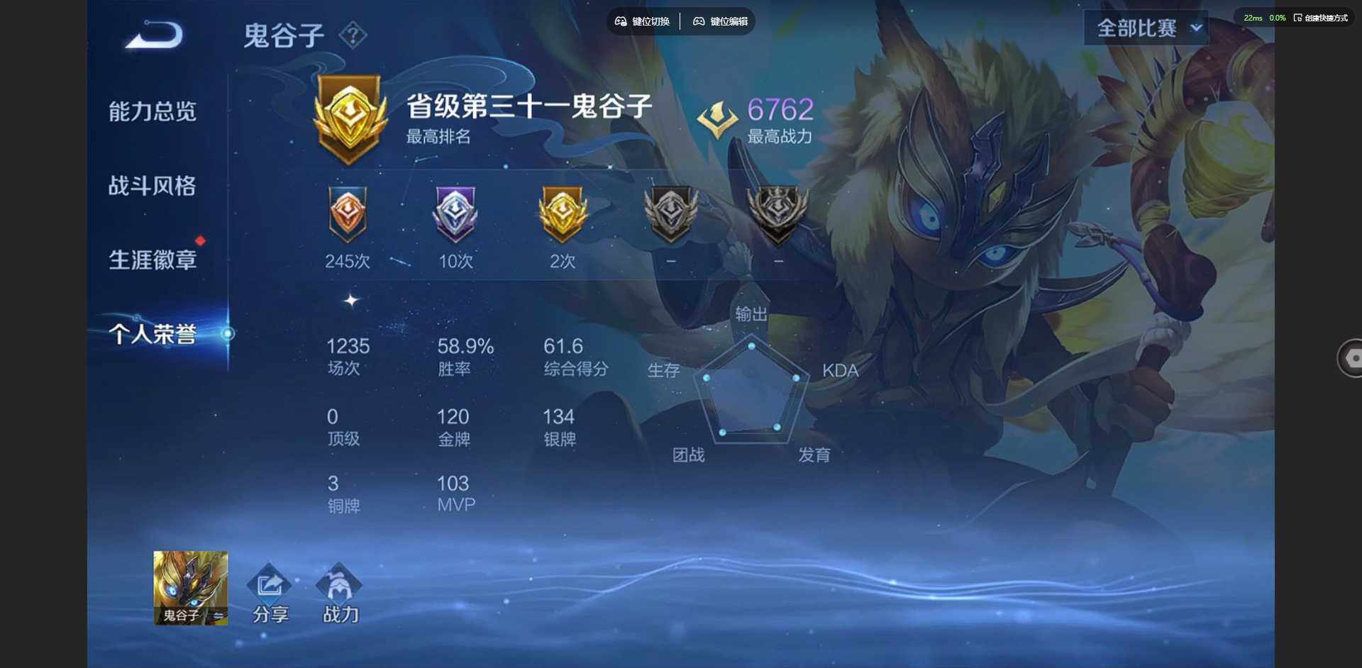 【小国标影 小国标韩信 小国标桑启 小国标大乔 小国标王昭君 小国标妲己】【金标西施 金标甄姬 金标鬼谷子 金标蔡文姬 】实名: 可修改 贵族等级: V10 英雄数: 128 皮肤数: 609 荣耀水晶: 武则天,天鹅之梦,星空梦想,大秦宣太后,全息碎影,星域神启,九霄神辉,幻阙歌,弑枪猎影,神鉴启示录,拾光映像 无双皮: 小乔时之魔女,离恨烟,雪境奇遇-甄姬,器灵