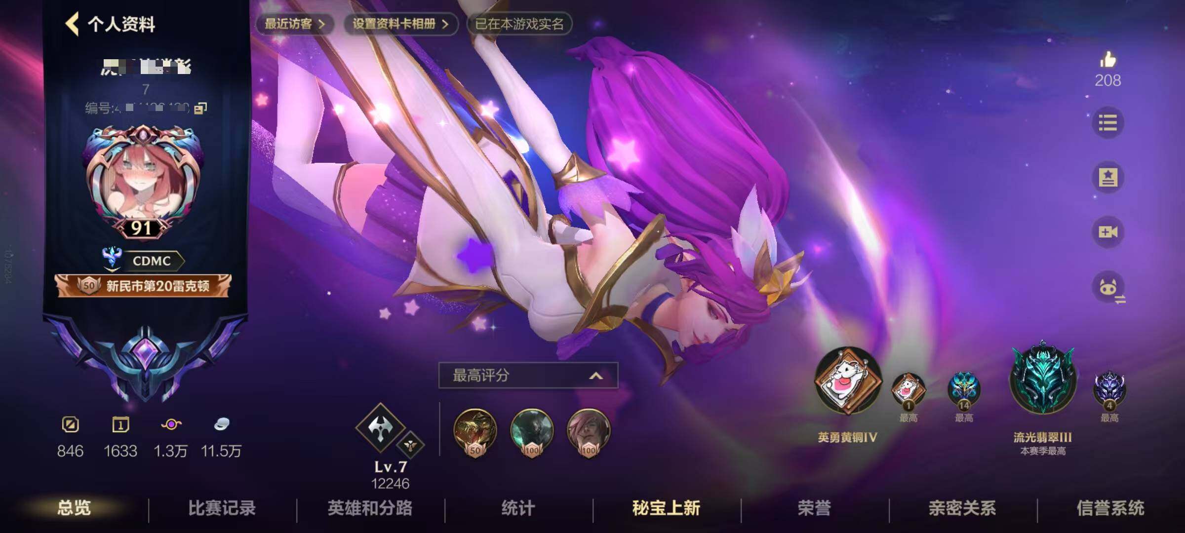 【LSC570】76英雄/66皮肤/8传说/19史诗/流光翡翠/天煞 劫/星域