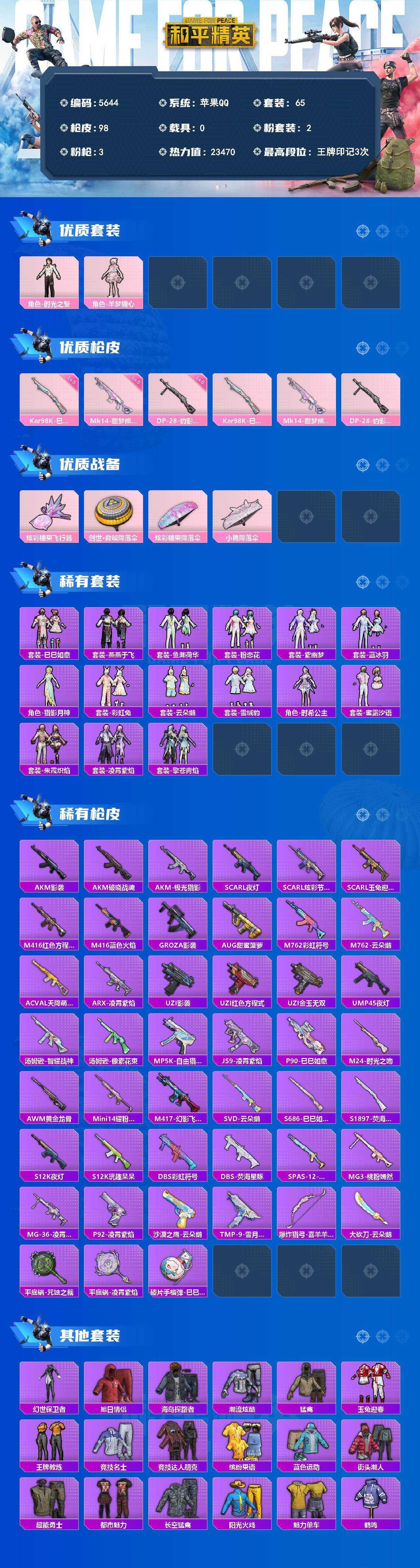 满级地铁苹果 手Q-2粉装-3特效枪-0载具-1粉色飞行器-23470热力值-3王牌印记-65套装-98枪皮