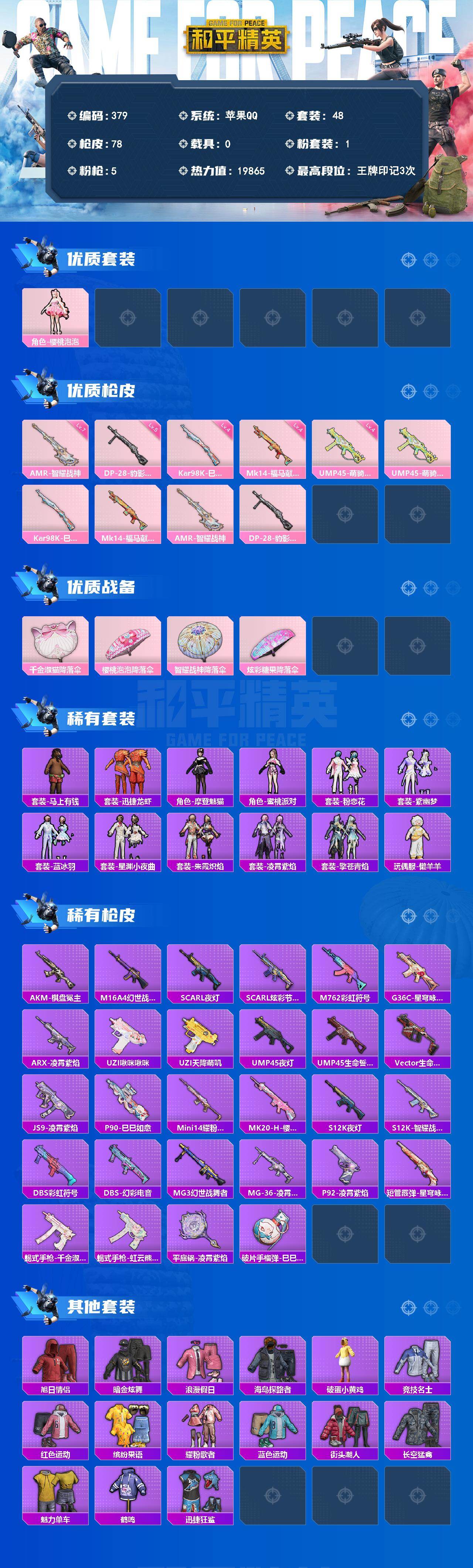 A2030苹果 手Q-1粉装-5特效枪-0载具-0粉色飞行器-19865热力值-3王牌印记-48套装-78枪皮